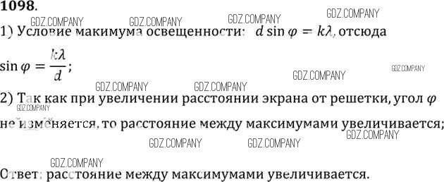 Здесь готовые ответы по Физике за 11 (десятый) класс от Рымкевич Задачник УМК (издательство: Дрофа от 2013 г.) № 1098