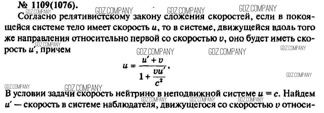 Здесь готовые ответы по Физике за 11 (десятый) класс от Рымкевич Задачник УМК (издательство: Дрофа от 2013 г.) № 1109