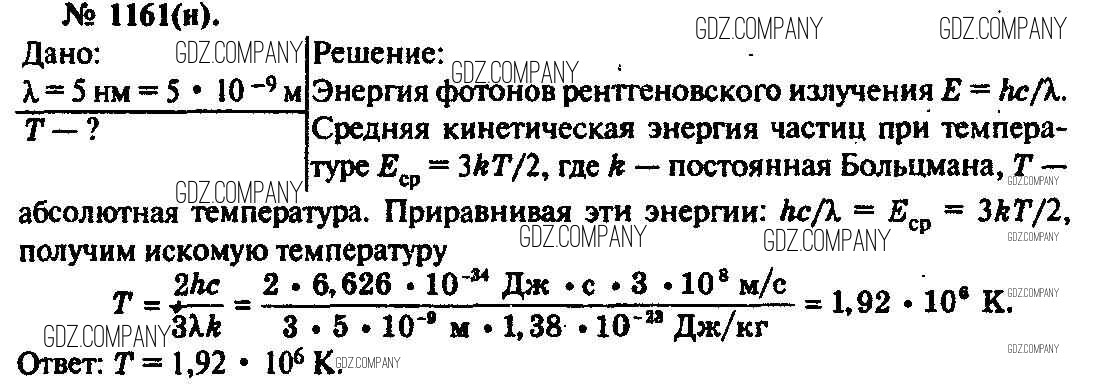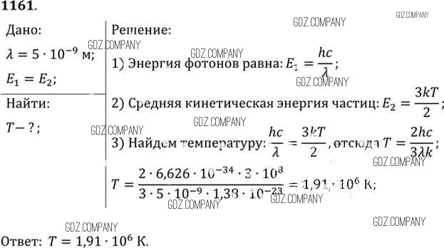Здесь готовые ответы по Физике за 11 (десятый) класс от Рымкевич Задачник УМК (издательство: Дрофа от 2013 г.) № 1161