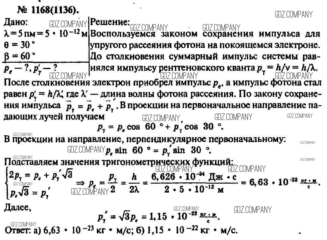 Здесь готовые ответы по Физике за 11 (десятый) класс от Рымкевич Задачник УМК (издательство: Дрофа от 2013 г.) № 1168