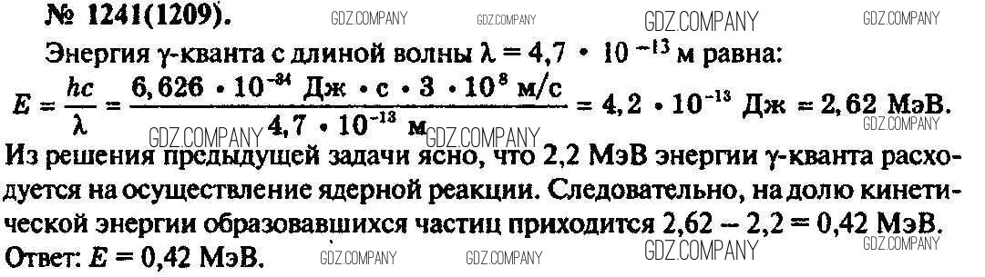 Здесь готовые ответы по Физике за 11 (десятый) класс от Рымкевич Задачник УМК (издательство: Дрофа от 2013 г.) № 1241
