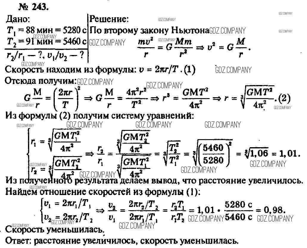 Здесь готовые ответы по Физике за 11 (десятый) класс от Рымкевич Задачник УМК (издательство: Дрофа от 2013 г.) № 243