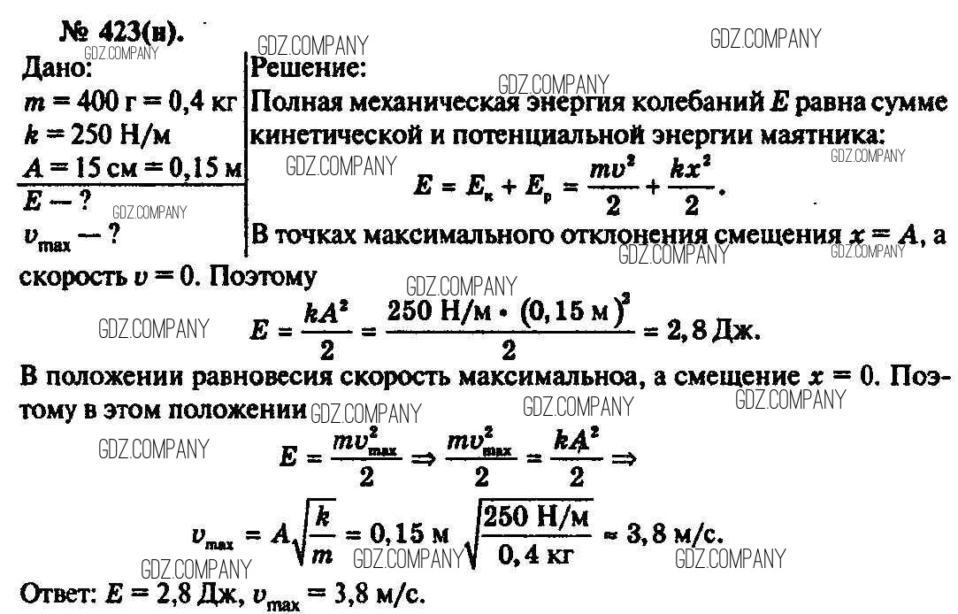 Здесь готовые ответы по Физике за 11 (десятый) класс от Рымкевич Задачник УМК (издательство: Дрофа от 2013 г.) № 423