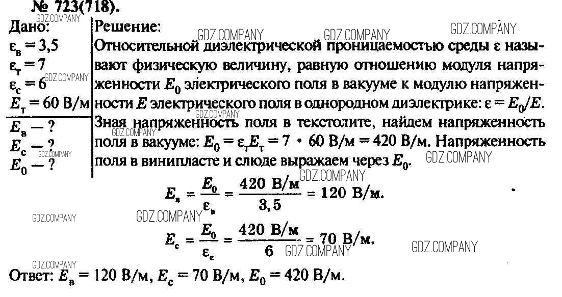 Здесь готовые ответы по Физике за 11 (десятый) класс от Рымкевич Задачник УМК (издательство: Дрофа от 2013 г.) № 723