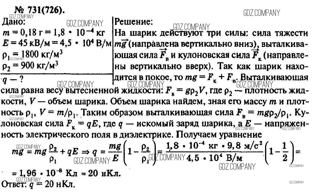 Здесь готовые ответы по Физике за 11 (десятый) класс от Рымкевич Задачник УМК (издательство: Дрофа от 2013 г.) № 731