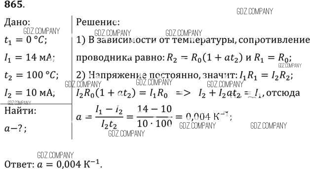 Здесь готовые ответы по Физике за 11 (десятый) класс от Рымкевич Задачник УМК (издательство: Дрофа от 2013 г.) № 865