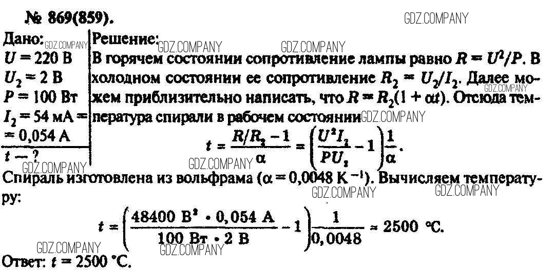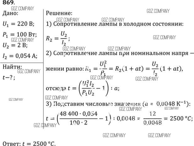 Здесь готовые ответы по Физике за 11 (десятый) класс от Рымкевич Задачник УМК (издательство: Дрофа от 2013 г.) № 869