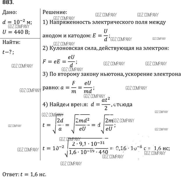 Здесь готовые ответы по Физике за 11 (десятый) класс от Рымкевич Задачник УМК (издательство: Дрофа от 2013 г.) № 883
