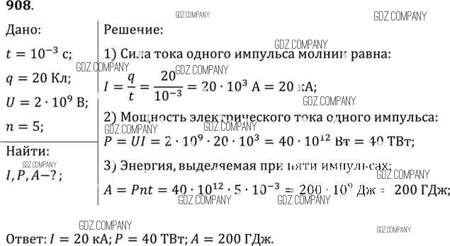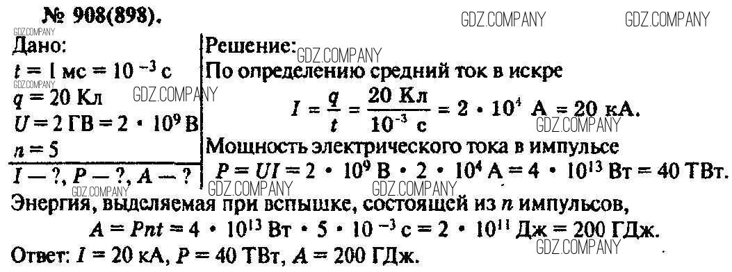Здесь готовые ответы по Физике за 11 (десятый) класс от Рымкевич Задачник УМК (издательство: Дрофа от 2013 г.) № 908