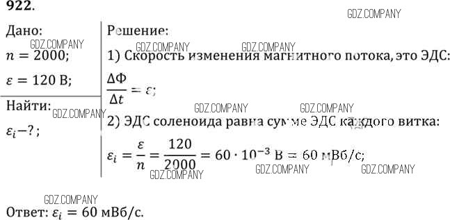 Здесь готовые ответы по Физике за 11 (десятый) класс от Рымкевич Задачник УМК (издательство: Дрофа от 2013 г.) № 922