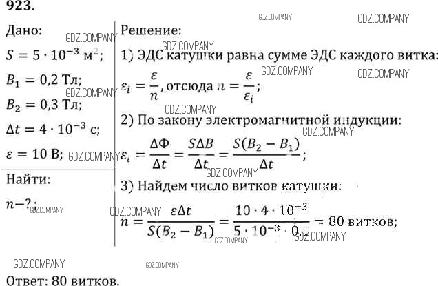 Здесь готовые ответы по Физике за 11 (десятый) класс от Рымкевич Задачник УМК (издательство: Дрофа от 2013 г.) № 923