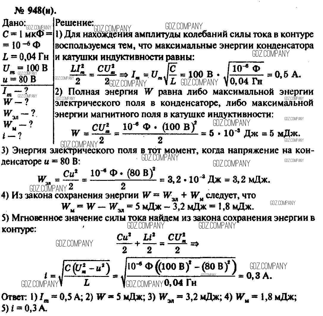 Здесь готовые ответы по Физике за 11 (десятый) класс от Рымкевич Задачник УМК (издательство: Дрофа от 2013 г.) № 948