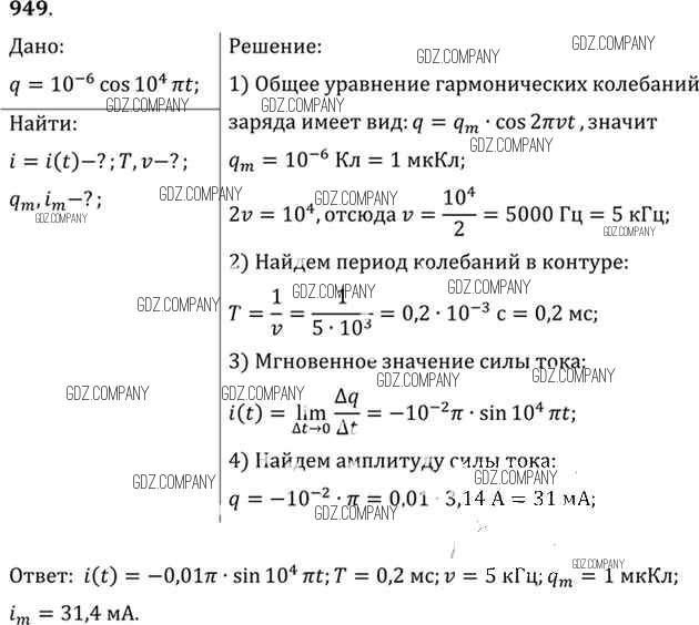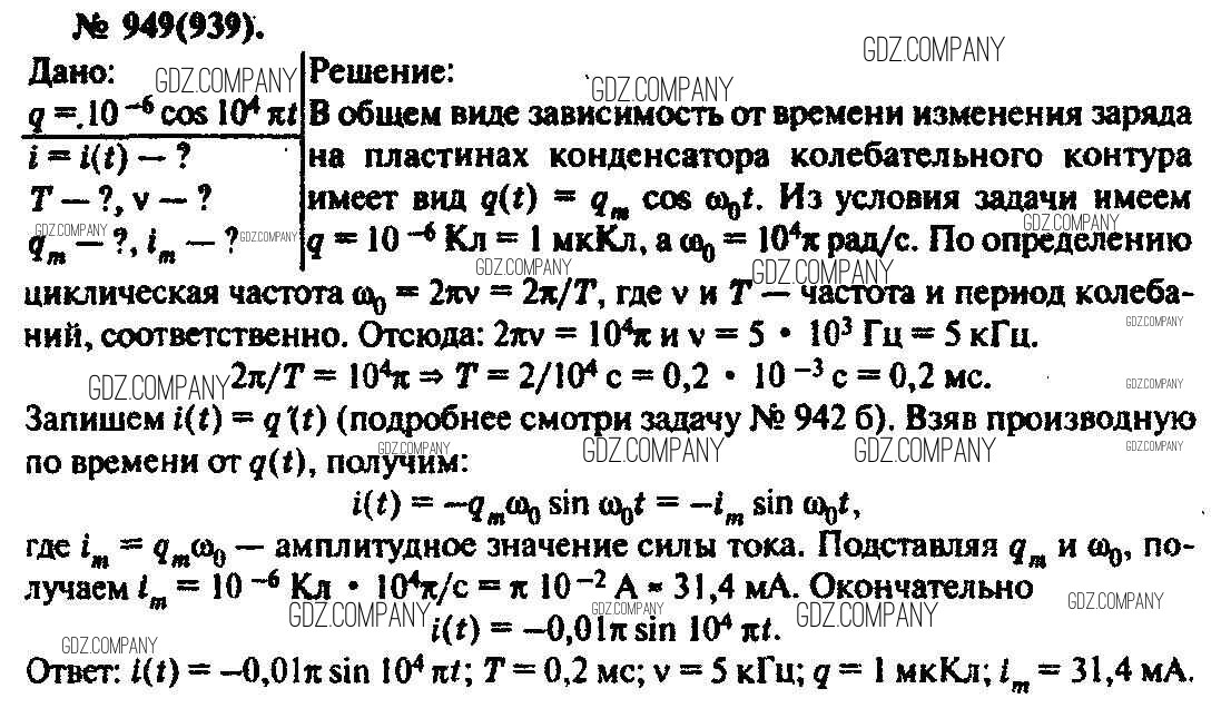 Здесь готовые ответы по Физике за 11 (десятый) класс от Рымкевич Задачник УМК (издательство: Дрофа от 2013 г.) № 949