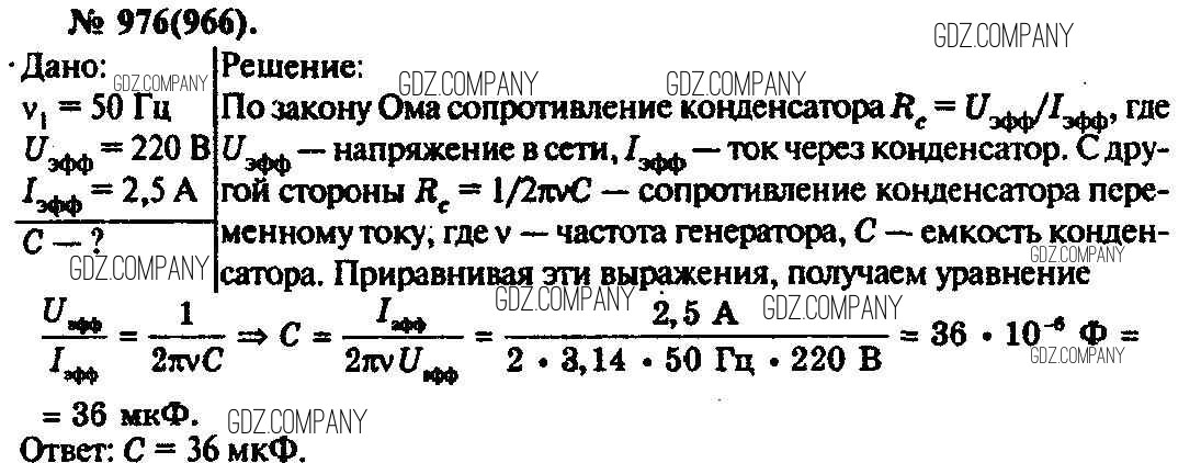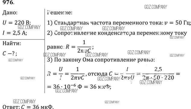 Здесь готовые ответы по Физике за 11 (десятый) класс от Рымкевич Задачник УМК (издательство: Дрофа от 2013 г.) № 976
