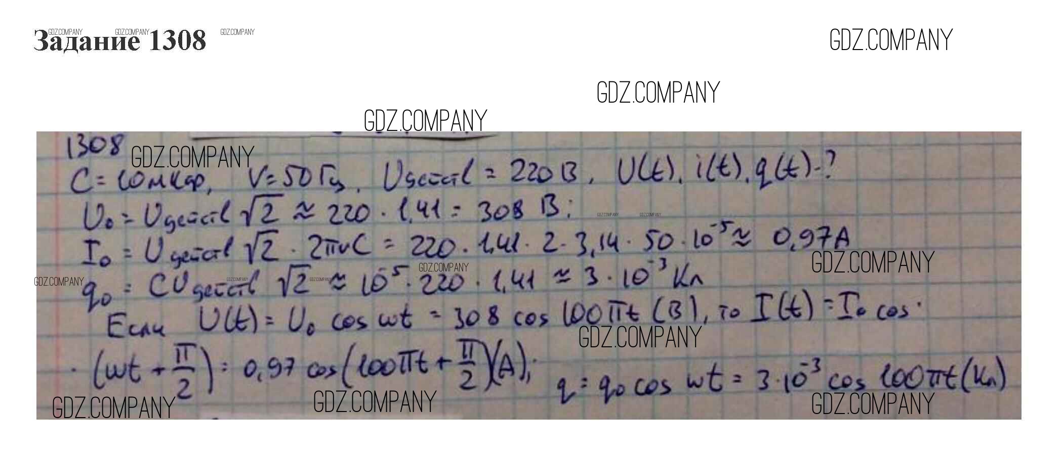 электрические колебания / 54. активное и реактивное сопротивление. Электрические цепи переменного напряжения / 1308