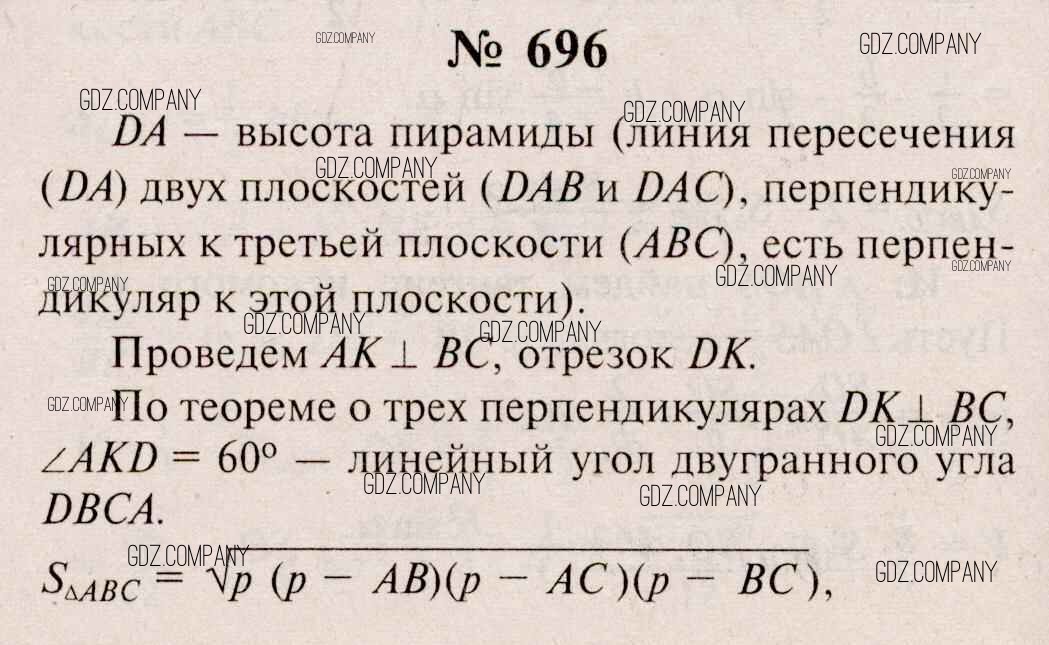 Здесь готовые ответы по Геометрии за 11 (десятый) класс от Атанасян, Бутузов, Кадомцев, Киселева, Позняк Учебник Базовый и углубленный уровень (издательство: Просвещение от 2015 г.) № 696 Базовый и углубленный уровень