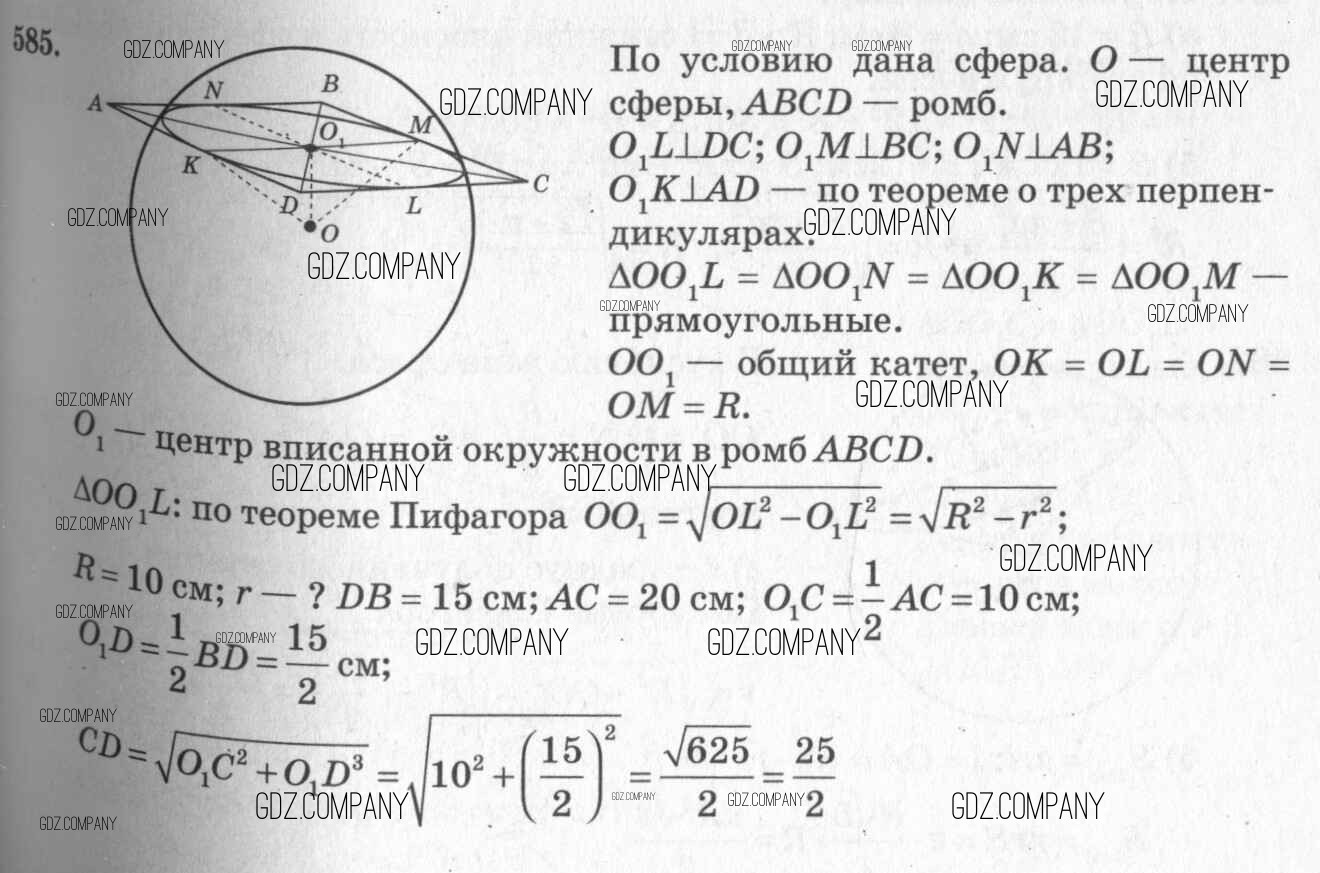 Здесь готовые ответы по Геометрии за 11 (десятый) класс от Атанасян, Бутузов, Кадомцев, Киселева, Позняк Учебник Базовый и углубленный уровень (издательство: Просвещение от 2015 г.) № 585 Базовый и углубленный уровень