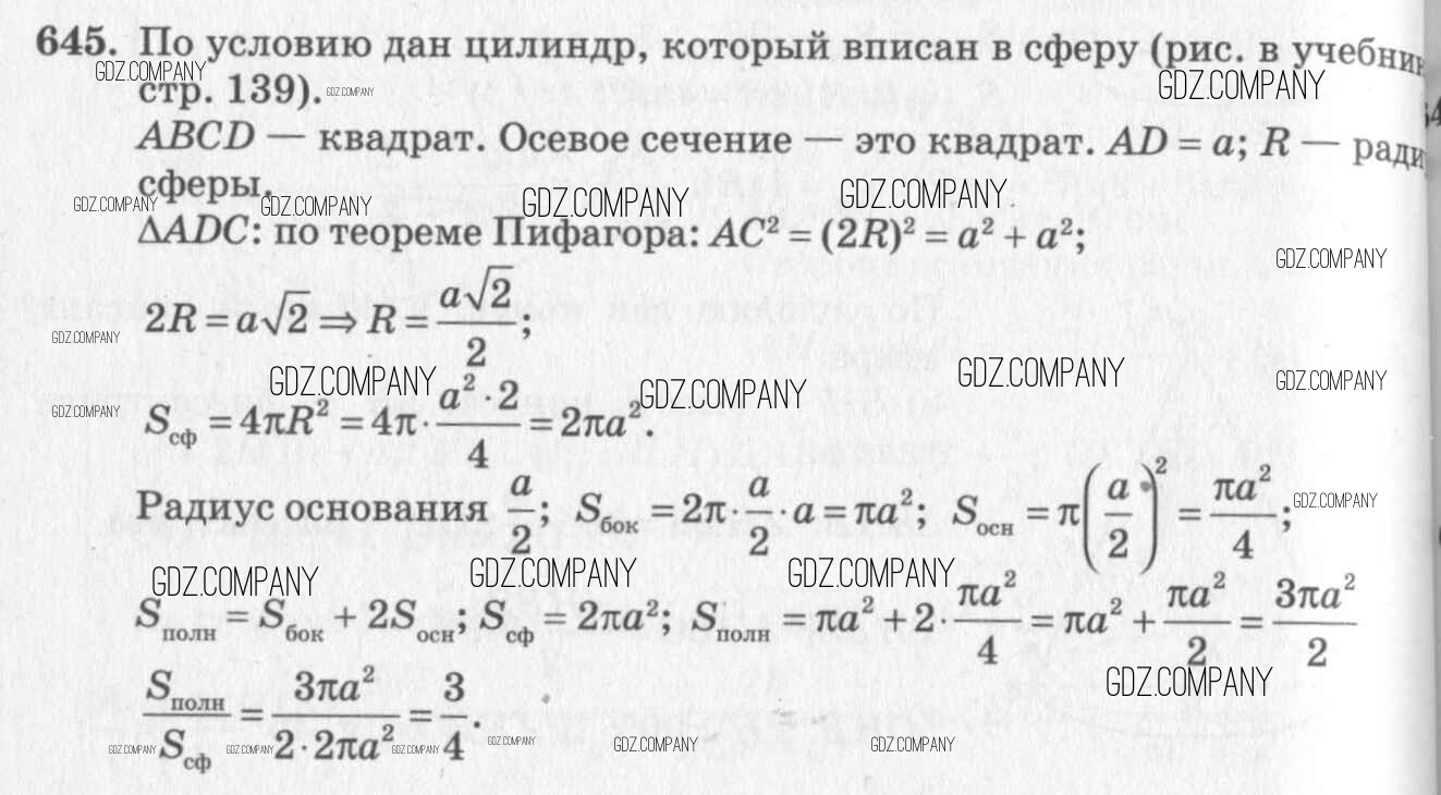Здесь готовые ответы по Геометрии за 11 (десятый) класс от Атанасян, Бутузов, Кадомцев, Киселева, Позняк Учебник Базовый и углубленный уровень (издательство: Просвещение от 2015 г.) № 645 Базовый и углубленный уровень