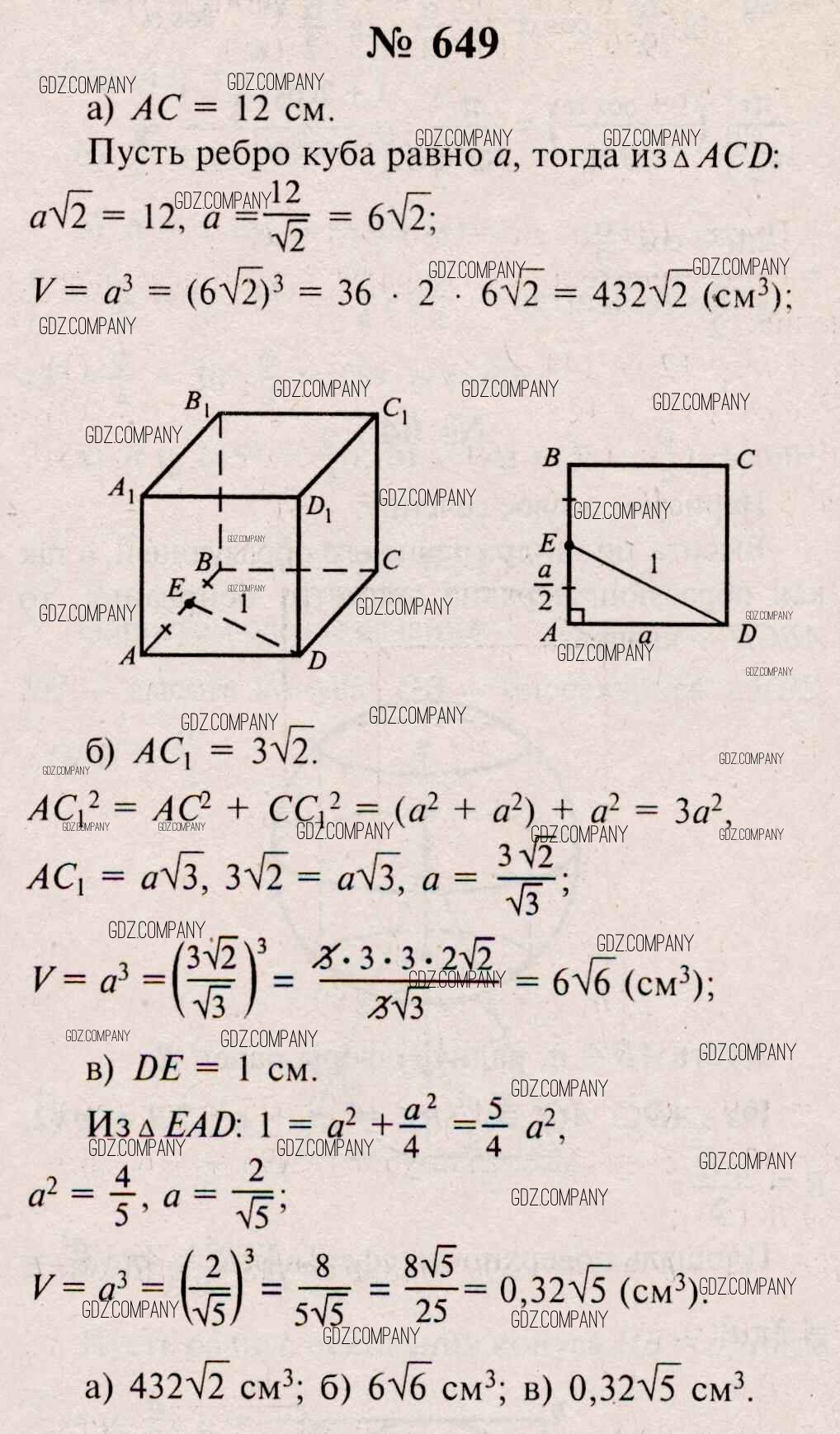 Здесь готовые ответы по Геометрии за 11 (десятый) класс от Атанасян, Бутузов, Кадомцев, Киселева, Позняк Учебник Базовый и углубленный уровень (издательство: Просвещение от 2015 г.) № 649 Базовый и углубленный уровень