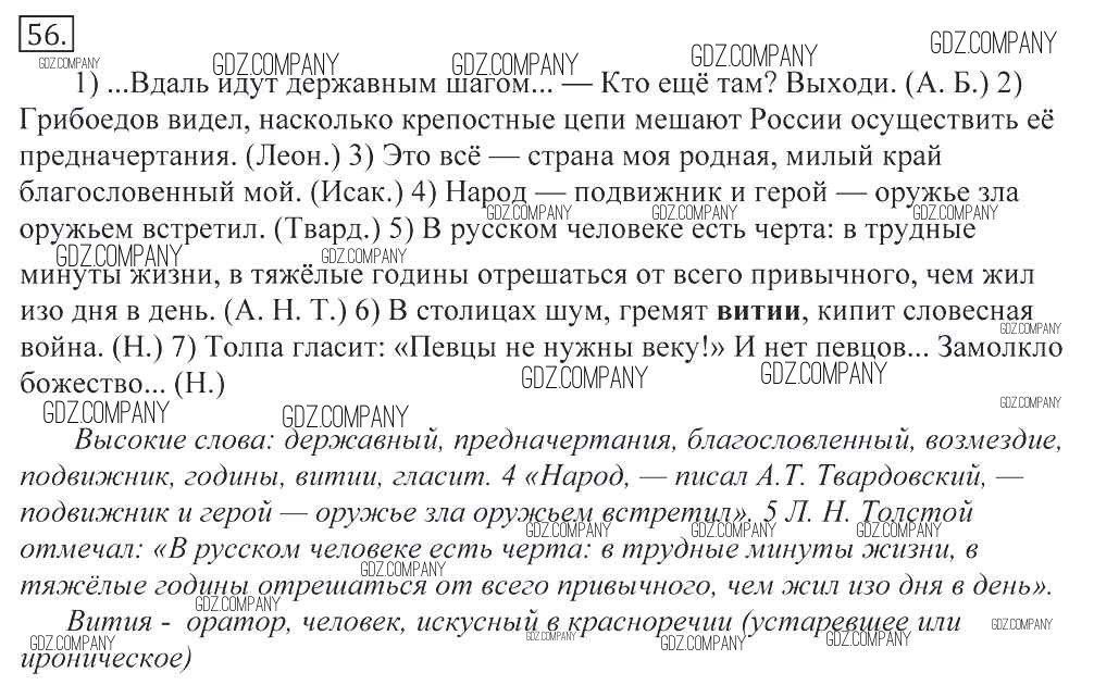 Здесь готовые ответы по Русскому языку за 11 (десятый) класс от Греков, Крючков, Чешко Учебник (издательство: Просвещение от 2016 г.) № 56