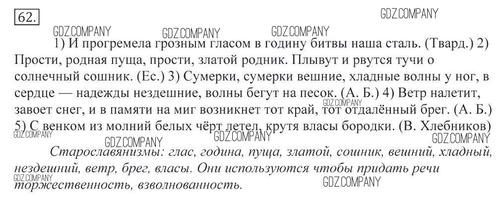 Здесь готовые ответы по Русскому языку за 11 (десятый) класс от Греков, Крючков, Чешко Учебник (издательство: Просвещение от 2016 г.) № 62