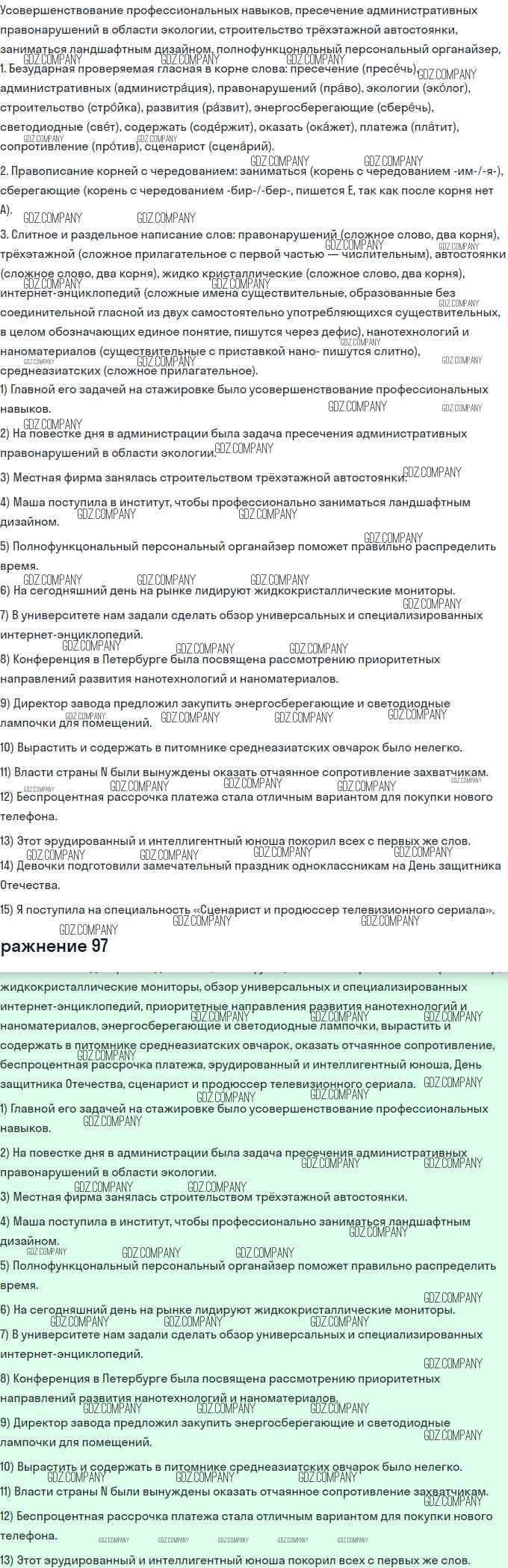 Здесь готовые ответы по Русскому языку за 11 (одиннадцатый) класс от Львова, Львов Учебник Базовый и углубленный уровень (издательство: Мнемозина от 2016 г.) № 97 Базовый и углубленный уровень