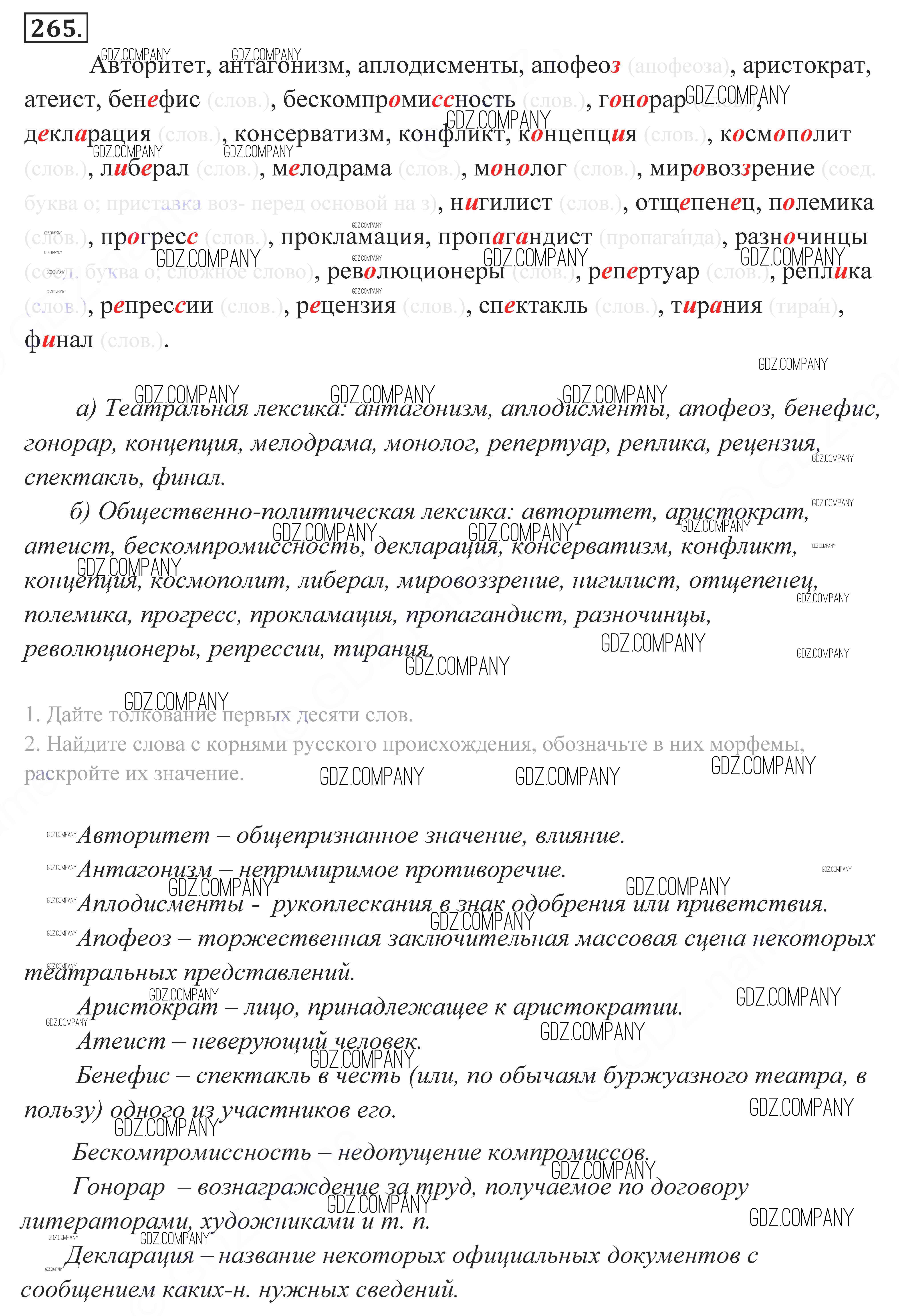 Здесь готовые ответы по Русскому языку за 11 (десятый) класс от Власенков, Рыбченкова Учебник Базовый уровень (издательство: Просвещение от 2014 г.) № 265 Базовый уровень