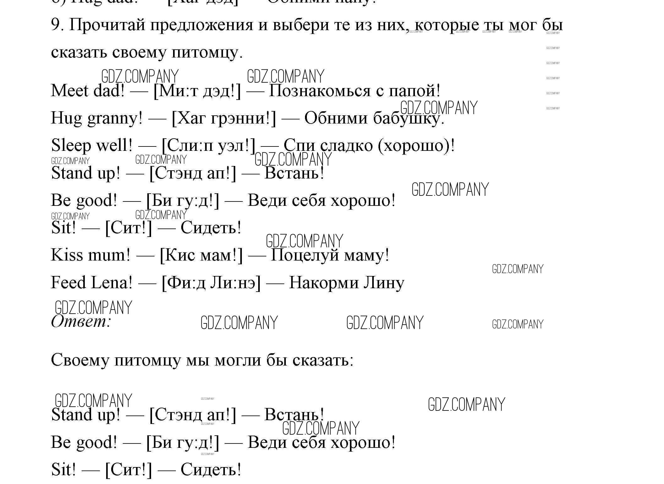 Здесь готовые ответы по Английскому языку за 2 (второй) класс от Афанасьева, Михеева Учебник Rainbow (издательство: Дрофа от 2017 г.) № 9