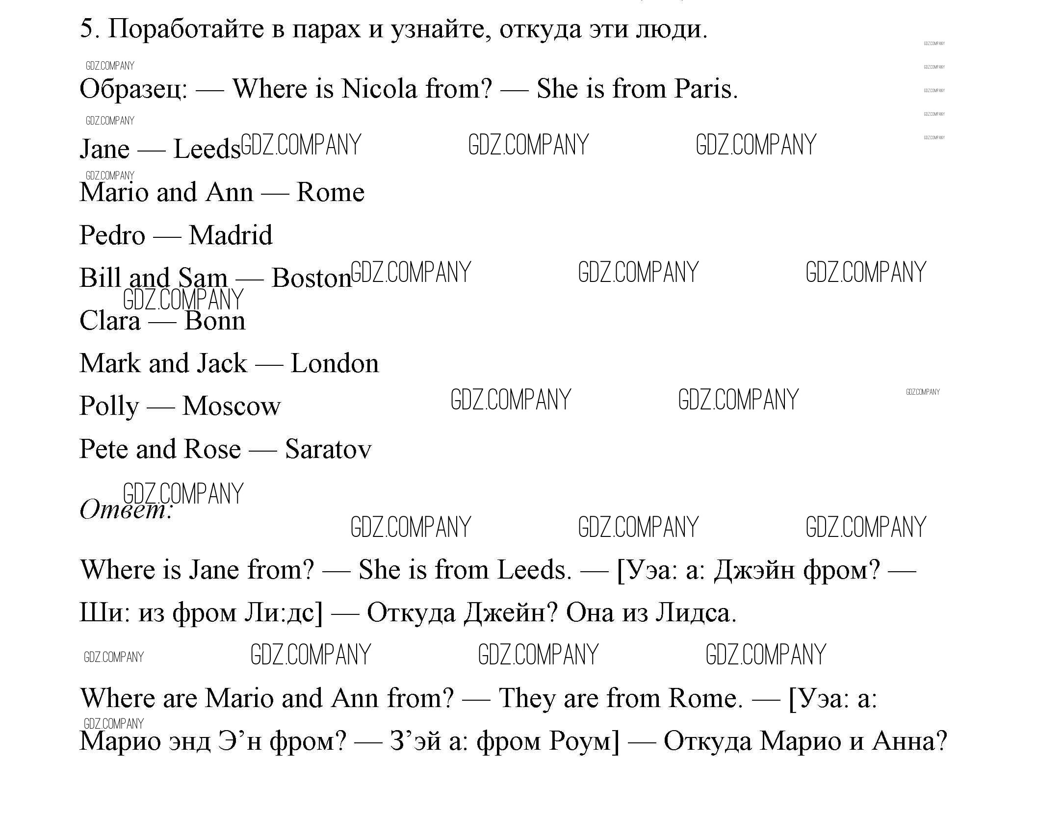 Здесь готовые ответы по Английскому языку за 2 (второй) класс от Афанасьева, Михеева Учебник Rainbow (издательство: Дрофа от 2017 г.) № 5