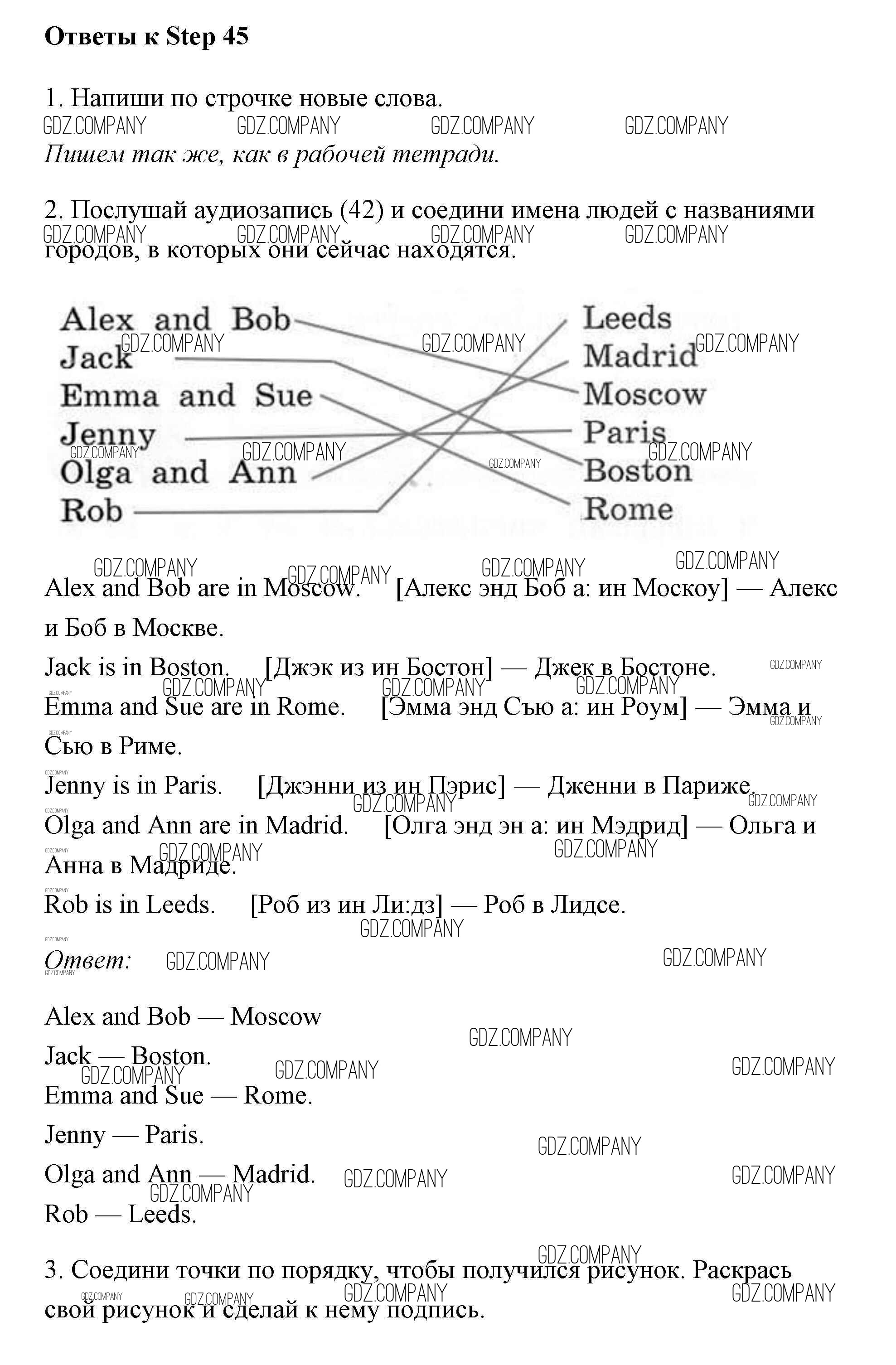 Здесь готовые ответы по Английскому языку за 2 (второй) класс от Афанасьева, Михеева Рабочая тетрадь Rainbow (издательство: Дрофа от 2016 г.) № 45