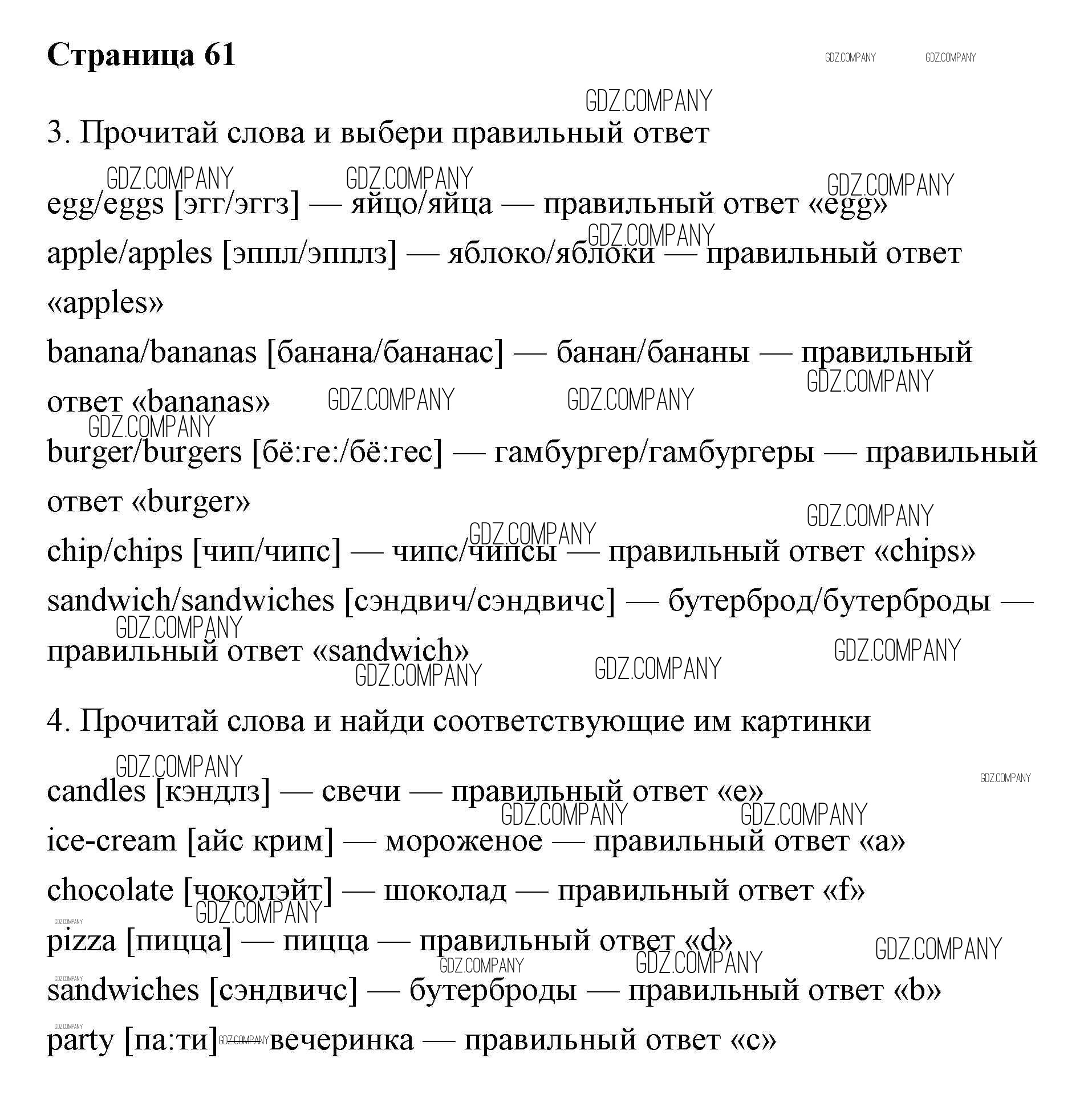 Здесь готовые ответы по Английскому языку за 2 (второй) класс от Быкова, Дули, Эванс, Поспелова Учебник Spotlight (издательство: Просвещение от 2017 г.) № 61