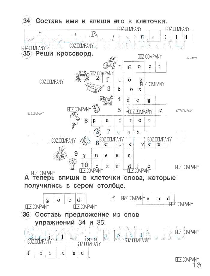 Здесь готовые ответы по Английскому языку за 2 (второй) класс от Комарова, Ларионова, Перретт Рабочая тетрадь Brilliant (издательство: Русское слово от 2014 г.) № 13