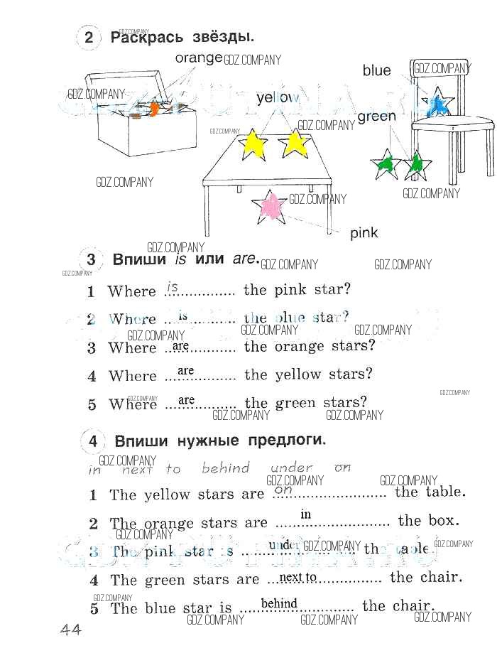 Здесь готовые ответы по Английскому языку за 2 (второй) класс от Комарова, Ларионова, Перретт Рабочая тетрадь Brilliant (издательство: Русское слово от 2014 г.) № 44