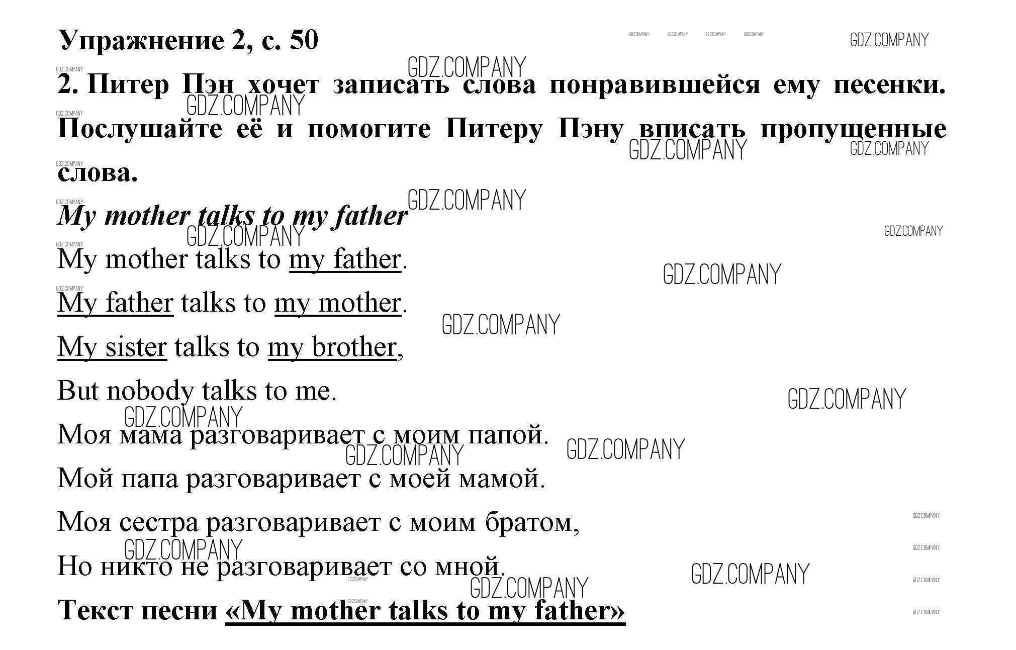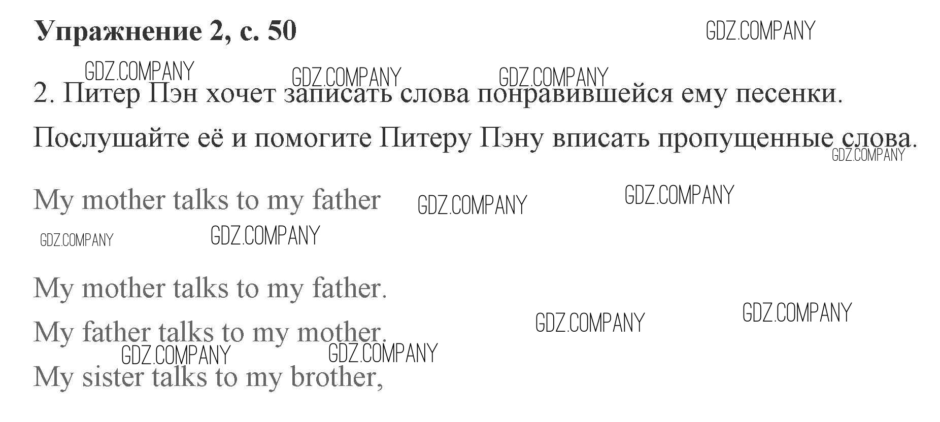 Здесь готовые ответы по Английскому языку за 2 (второй) класс от Кузовлев, Перегудова, Пастухова Рабочая тетрадь (издательство: Просвещение от 2011 г.) № 50