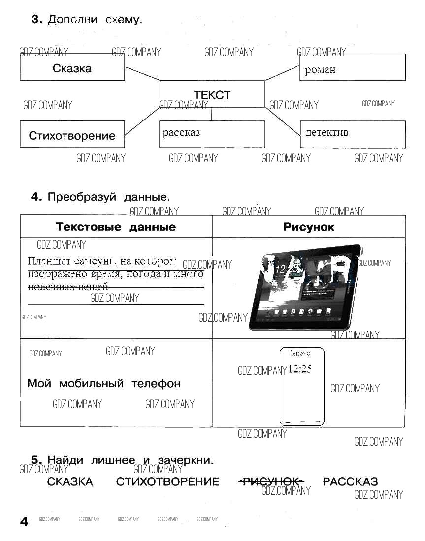 Здесь готовые ответы по Информатике за 2 (второй) класс от Матвеева, Челак, Конопатова, Панкратова, Нурова Рабочая тетрадь УМК  (издательство: Бином от 2012 г.) № стр. 4