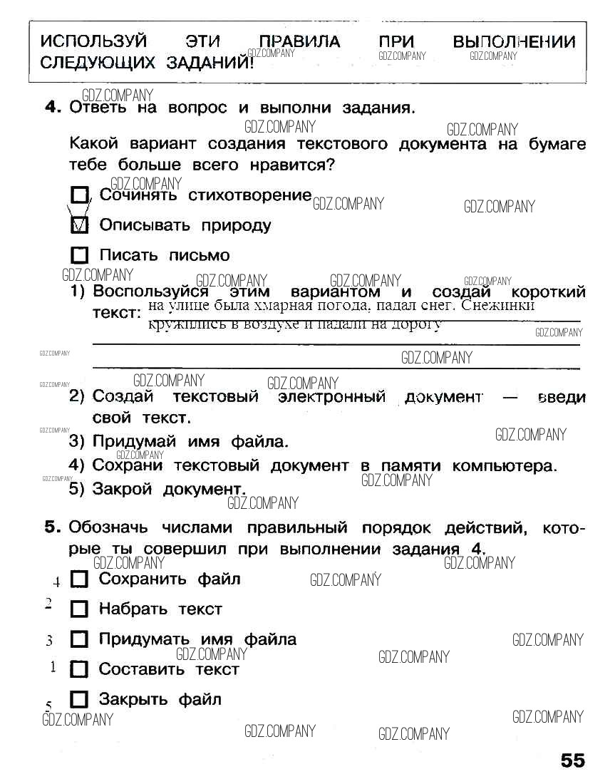 Здесь готовые ответы по Информатике за 2 (второй) класс от Матвеева, Челак, Конопатова, Панкратова, Нурова Рабочая тетрадь УМК (издательство: Бином от 2012 г.) № стр. 55