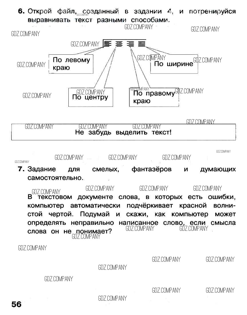 Здесь готовые ответы по Информатике за 2 (второй) класс от Матвеева, Челак, Конопатова, Панкратова, Нурова Рабочая тетрадь УМК (издательство: Бином от 2012 г.) № стр. 56