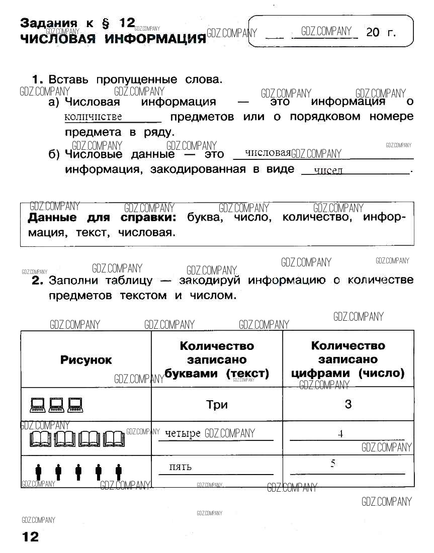 Здесь готовые ответы по Информатике за 2 (второй) класс от Матвеева, Челак, Конопатова, Панкратова, Нурова Рабочая тетрадь УМК  (издательство: Бином от 2012 г.) № стр. 12