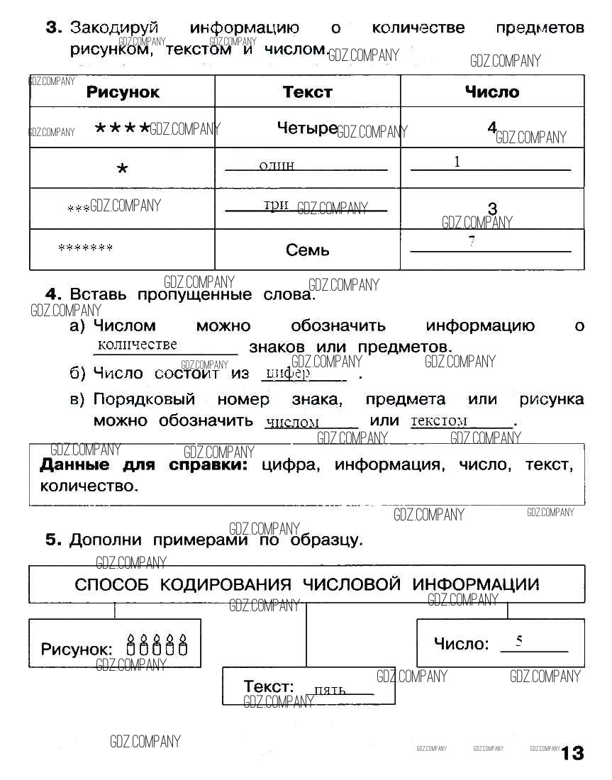 Здесь готовые ответы по Информатике за 2 (второй) класс от Матвеева, Челак, Конопатова, Панкратова, Нурова Рабочая тетрадь УМК  (издательство: Бином от 2012 г.) № стр. 13