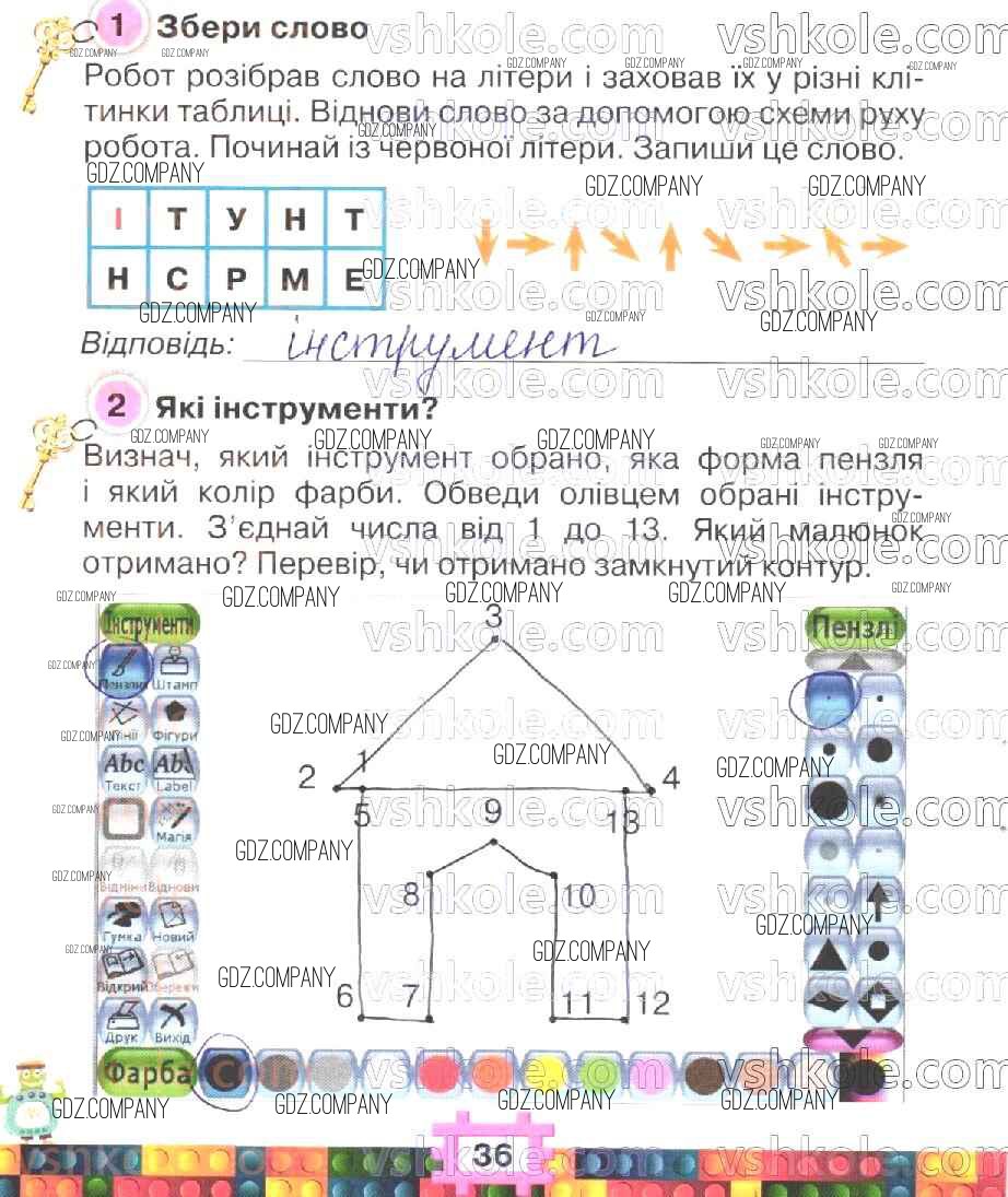 Здесь готовые ответы по Информатике за 2 (второй) класс от Барна, Морзе Рабочая тетрадь (издательство: Орiон от 2019 г.) № 36