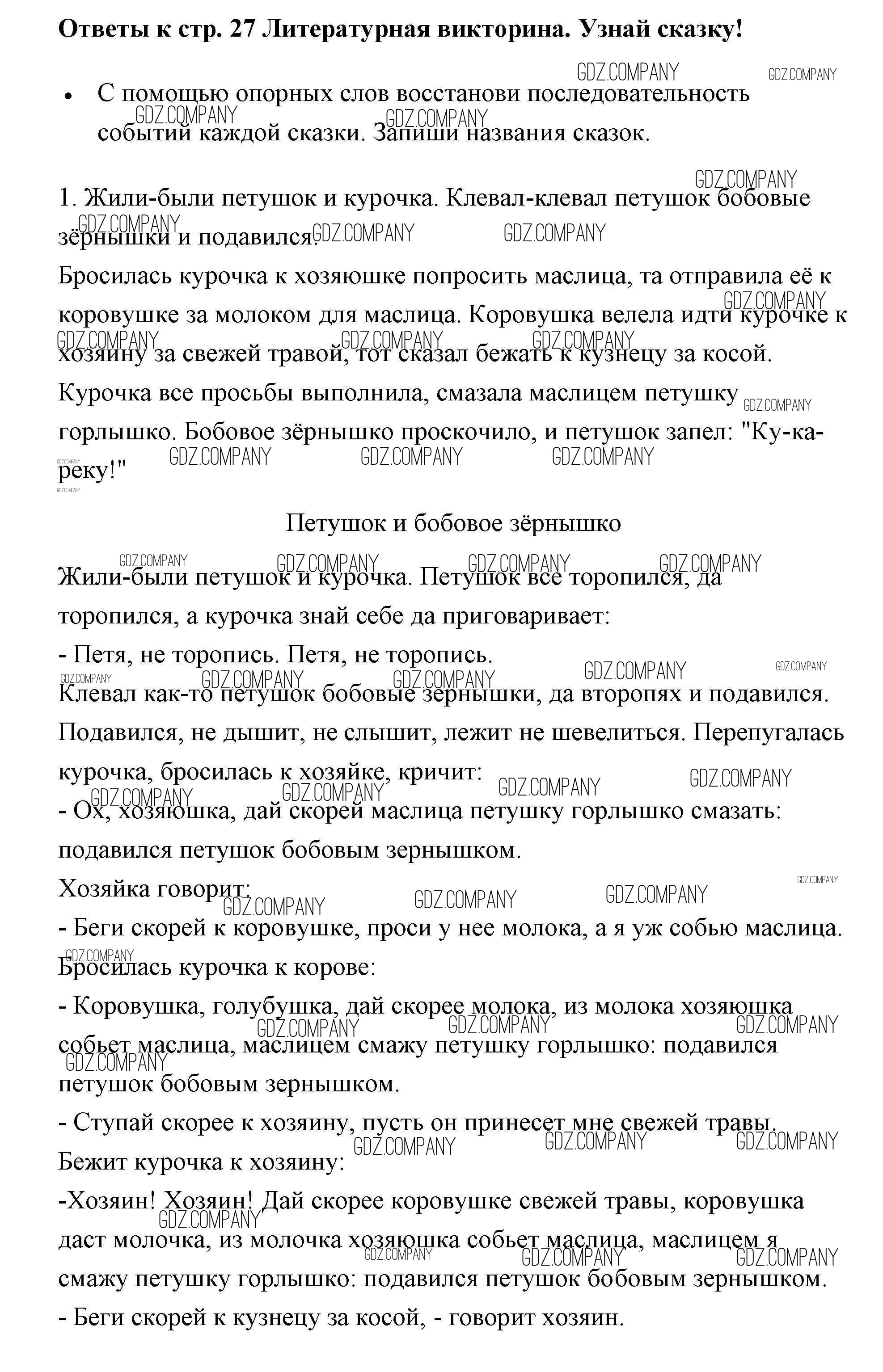 Здесь готовые ответы по Литературе за 2 (второй) класс от Бойкина, Виноградская Рабочая тетрадь Школа России  (издательство: Просвещение от 2018 г.) № 27