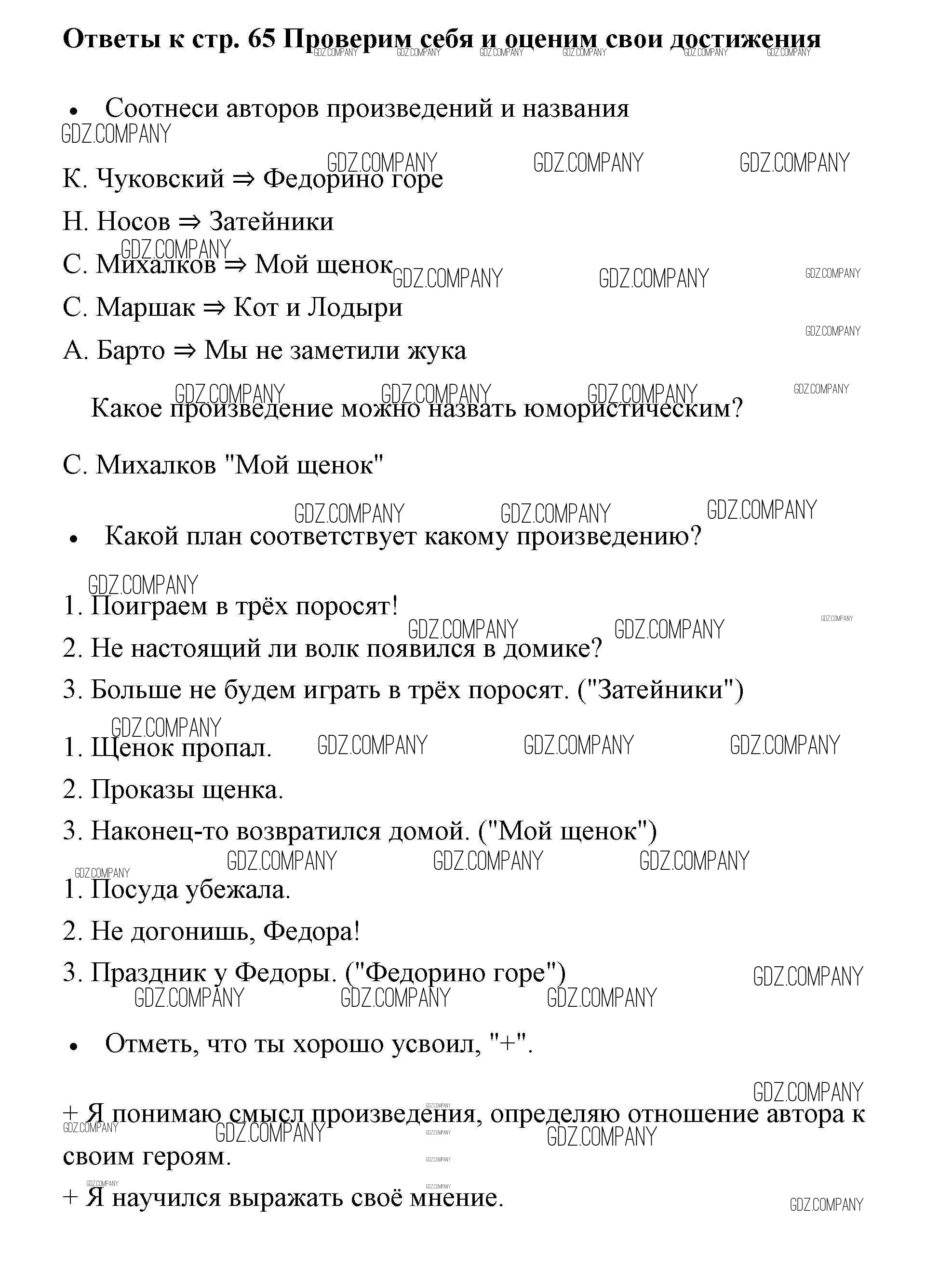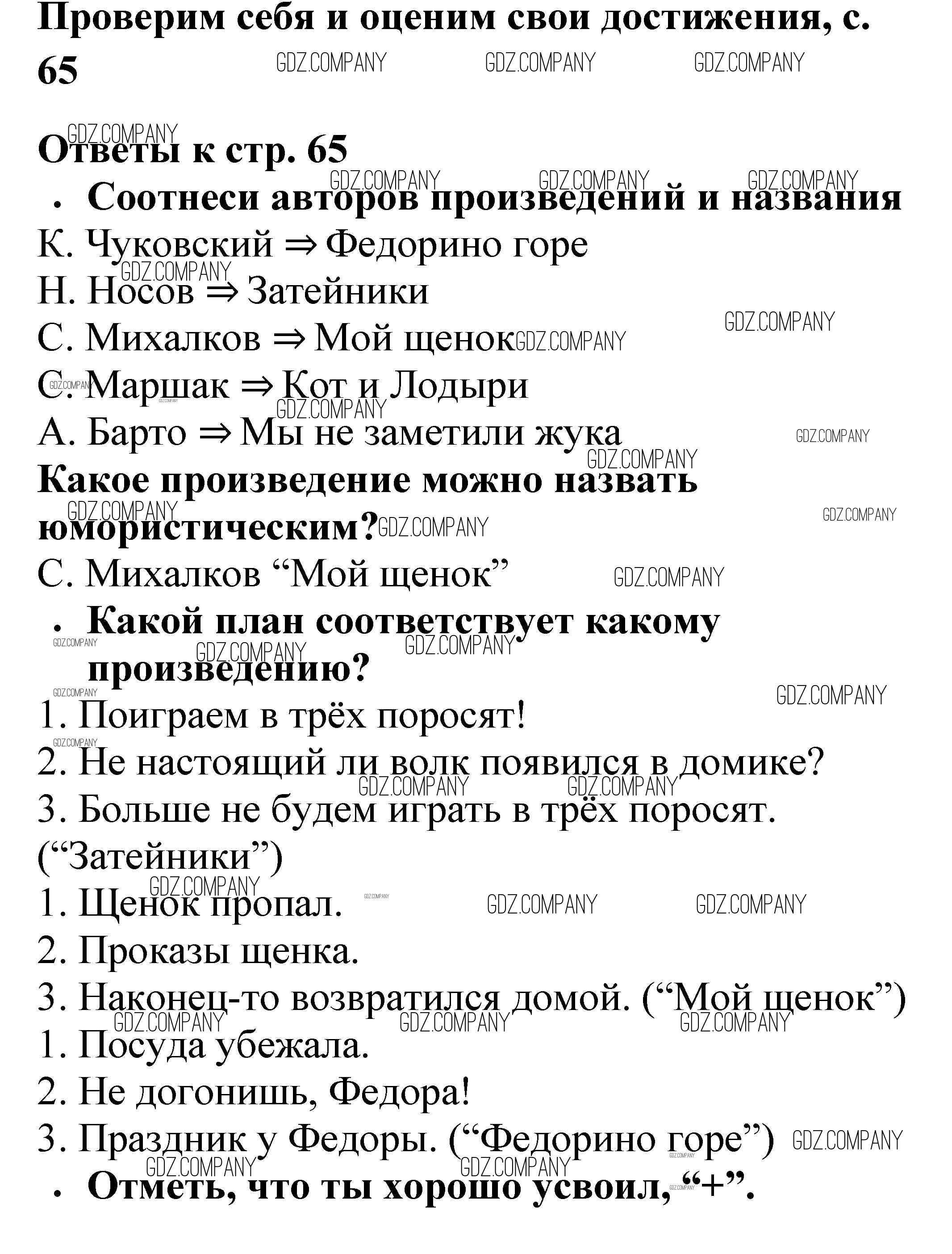Здесь готовые ответы по Литературе за 2 (второй) класс от Бойкина, Виноградская Рабочая тетрадь Школа России  (издательство: Просвещение от 2018 г.) № 65