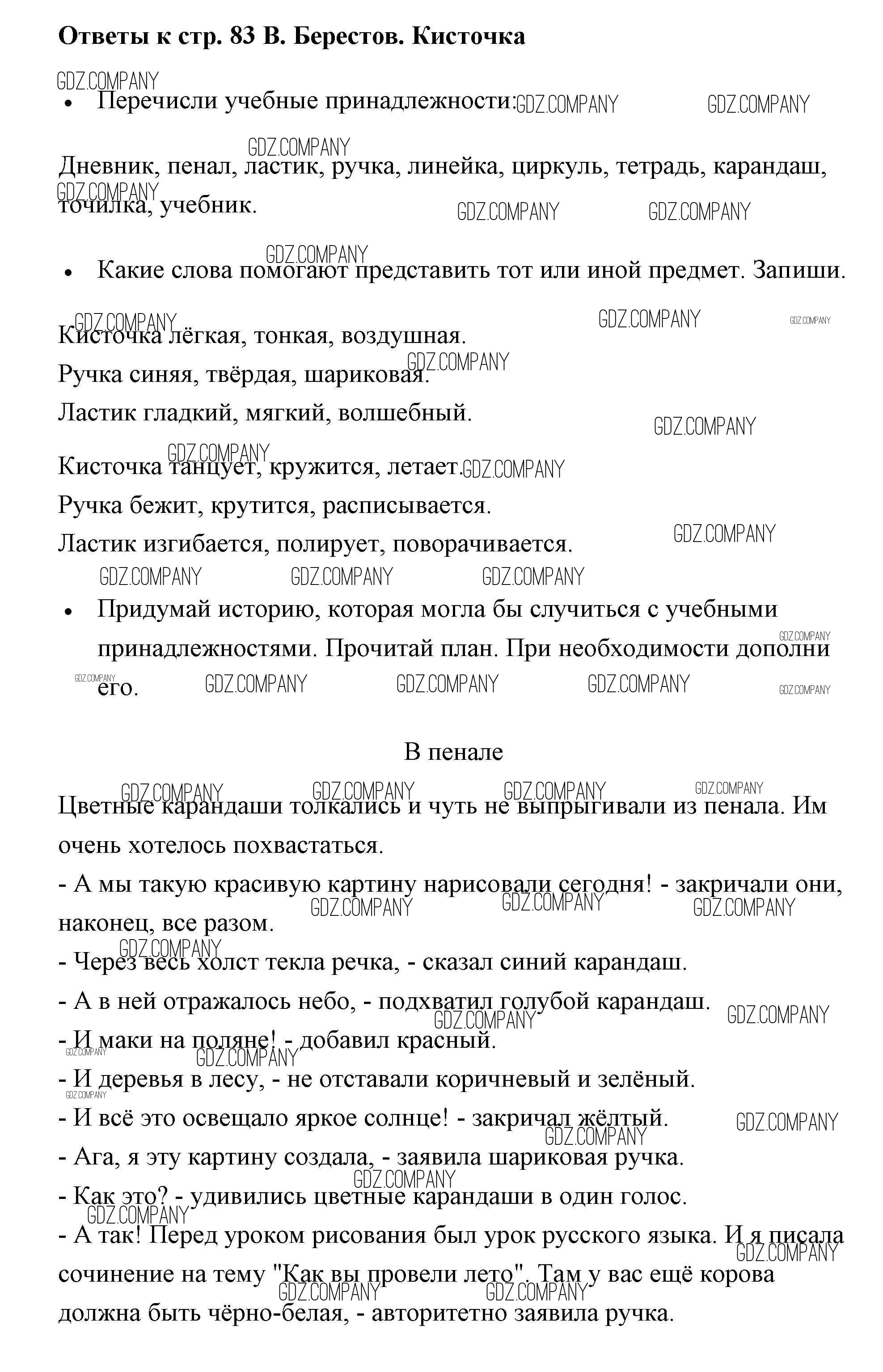 Здесь готовые ответы по Литературе за 2 (второй) класс от Бойкина, Виноградская Рабочая тетрадь Школа России  (издательство: Просвещение от 2018 г.) № 83