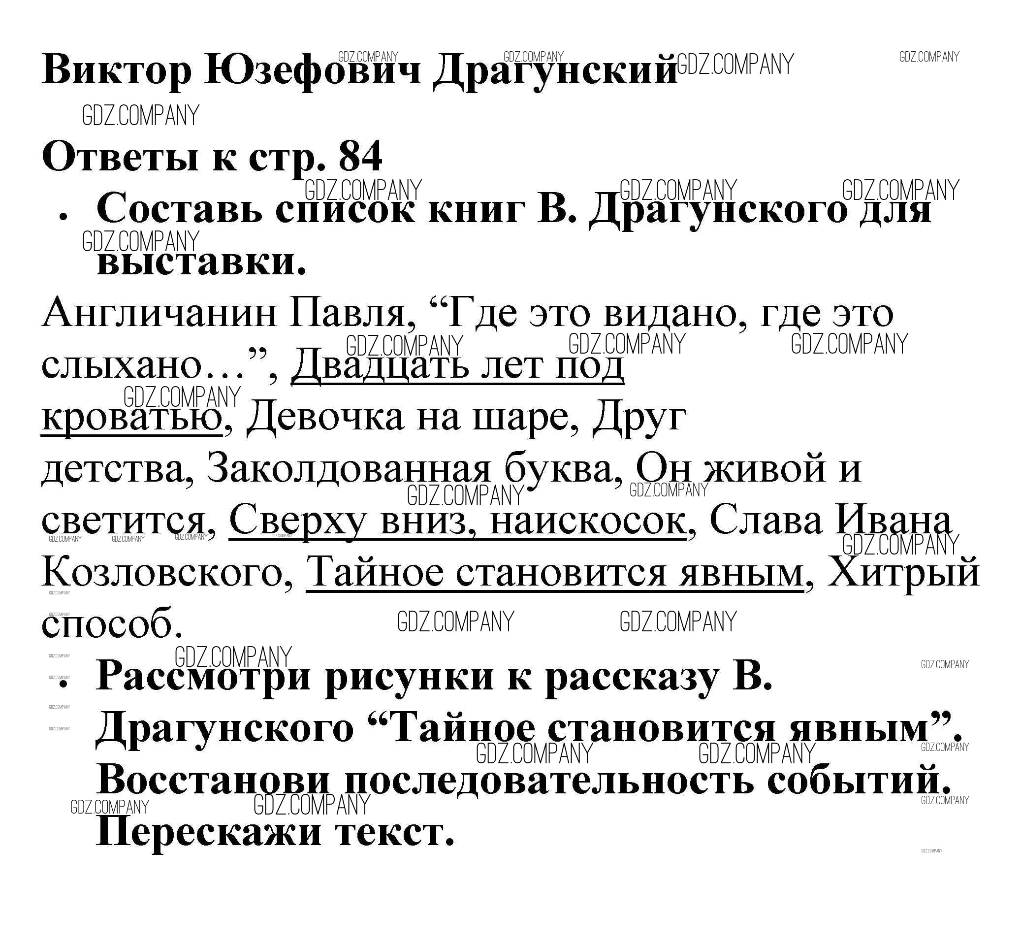 Здесь готовые ответы по Литературе за 2 (второй) класс от Бойкина, Виноградская Рабочая тетрадь Школа России  (издательство: Просвещение от 2018 г.) № 84