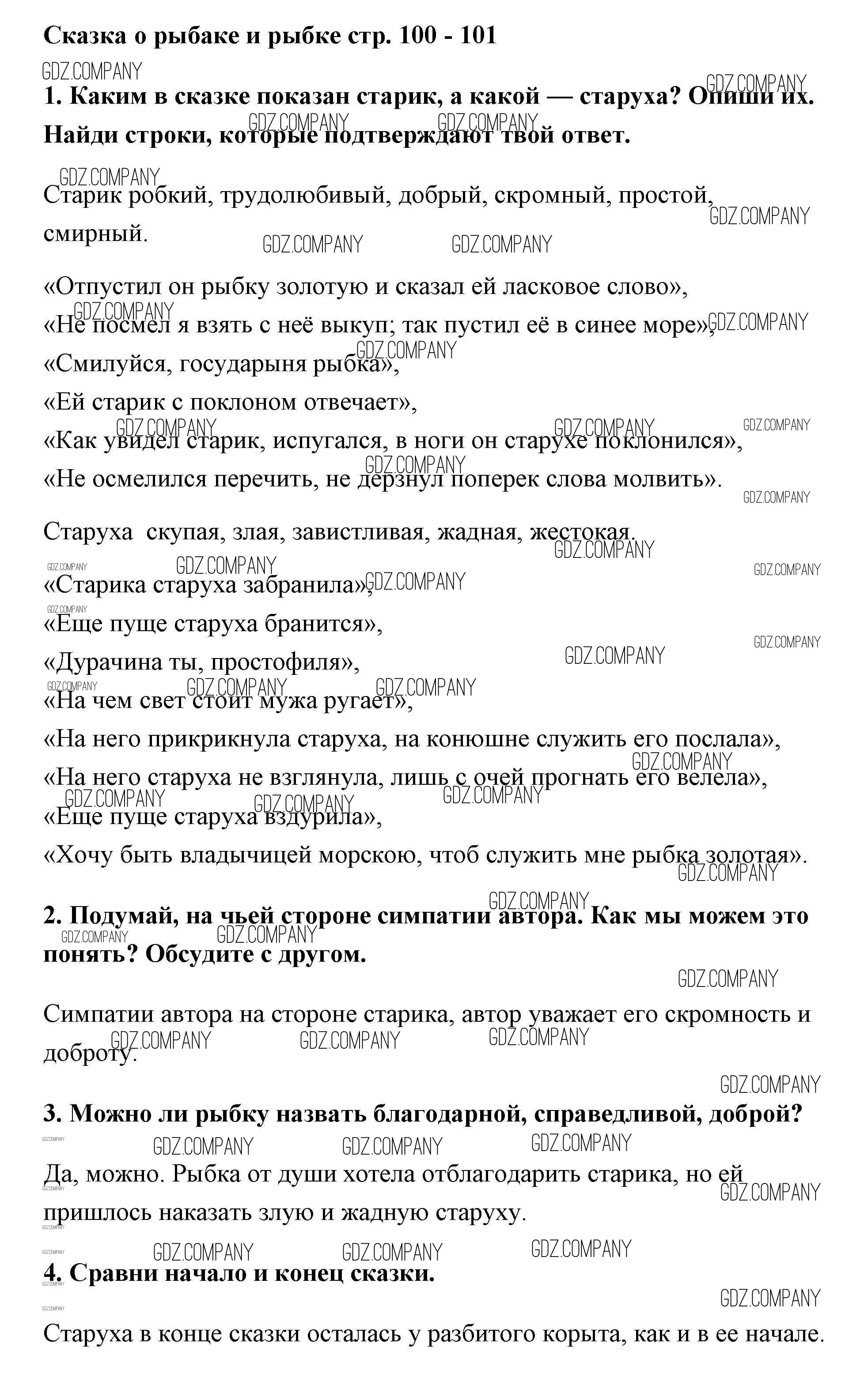 Здесь готовые ответы по Литературе за 2 (второй) класс от Климанова, Горецкий, Голованова Учебник Школа России  (издательство: Просвещение от 2018 г.) № 100-101
