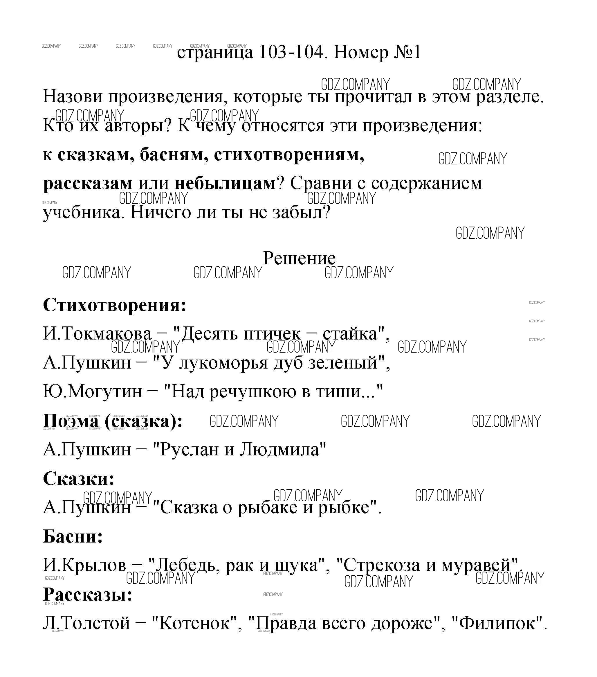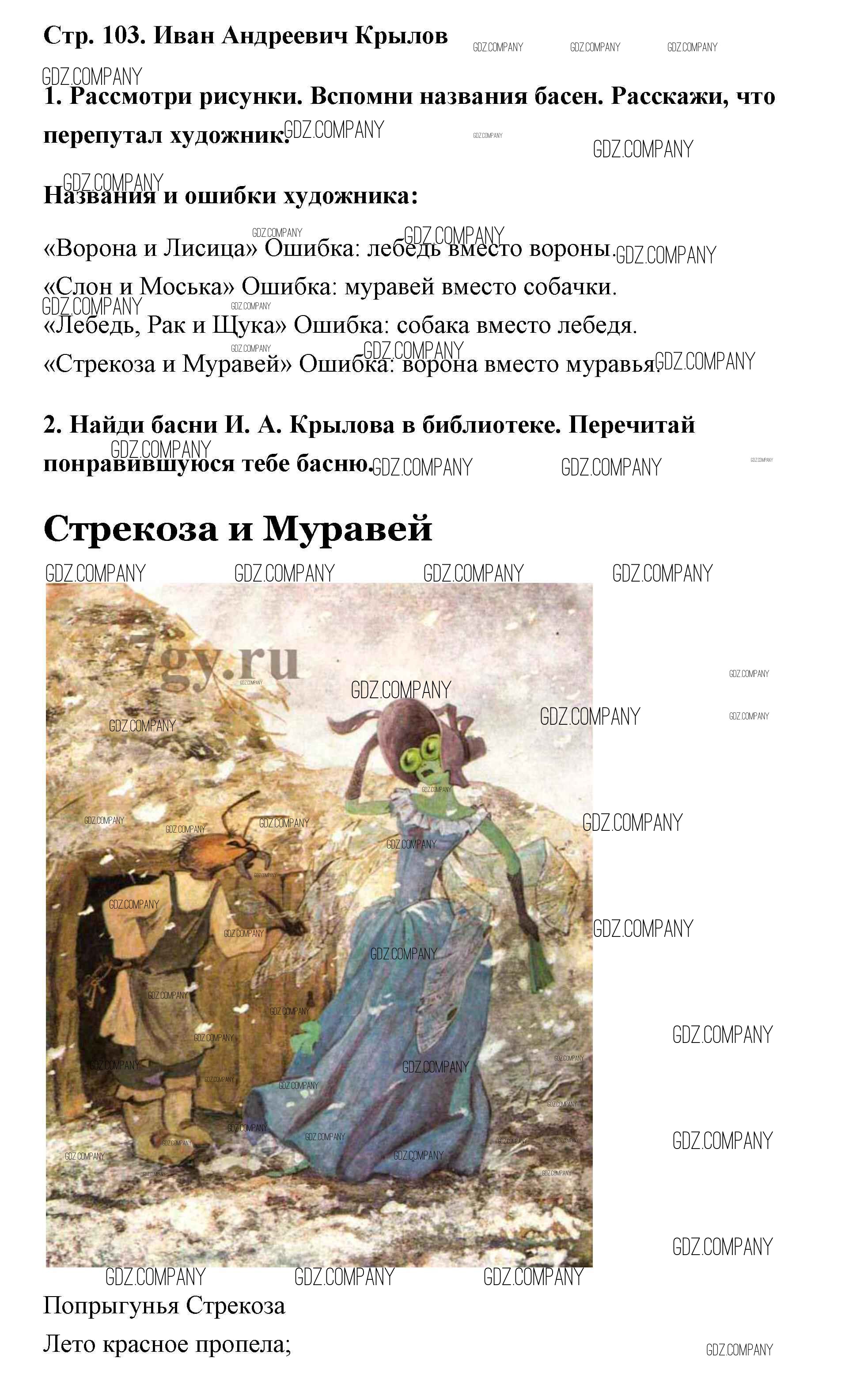 Здесь готовые ответы по Литературе за 2 (второй) класс от Климанова, Горецкий, Голованова Учебник Школа России  (издательство: Просвещение от 2018 г.) № 103