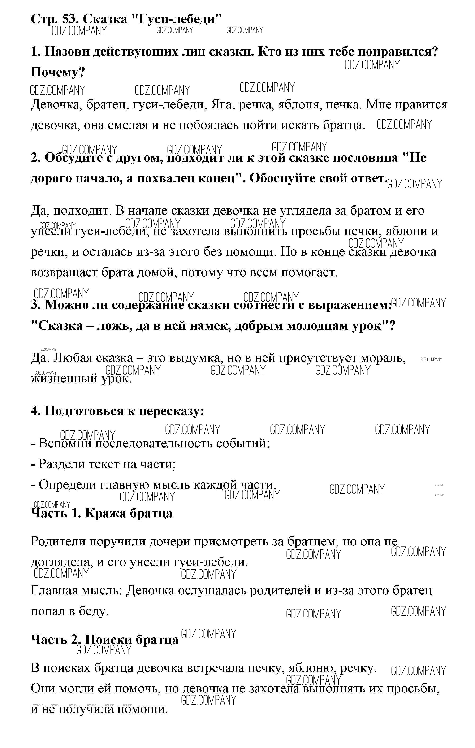 Здесь готовые ответы по Литературе за 2 (второй) класс от Климанова, Горецкий, Голованова Учебник Школа России  (издательство: Просвещение от 2018 г.) № 53
