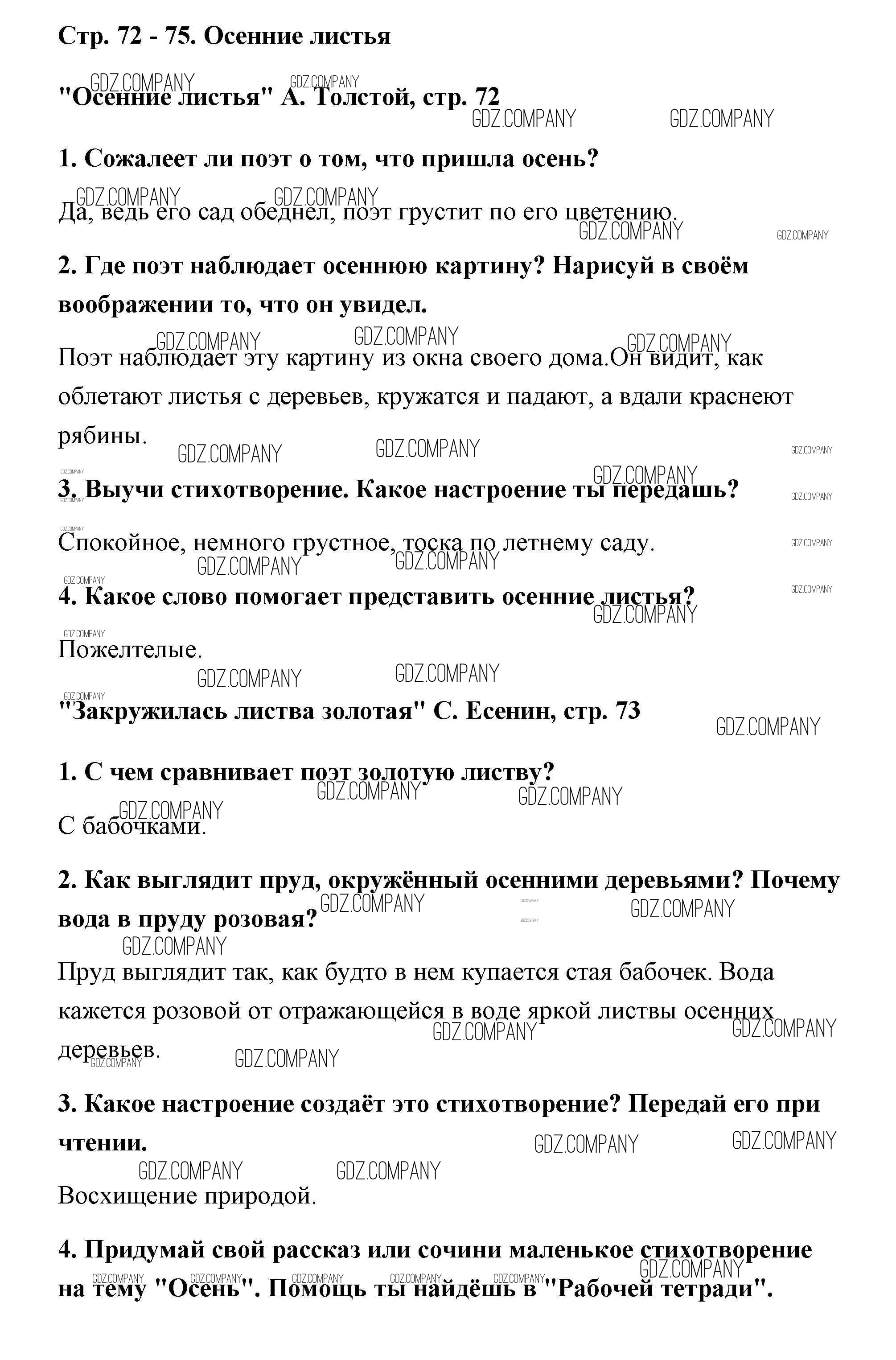 Здесь готовые ответы по Литературе за 2 (второй) класс от Климанова, Горецкий, Голованова Учебник Школа России  (издательство: Просвещение от 2018 г.) № 72