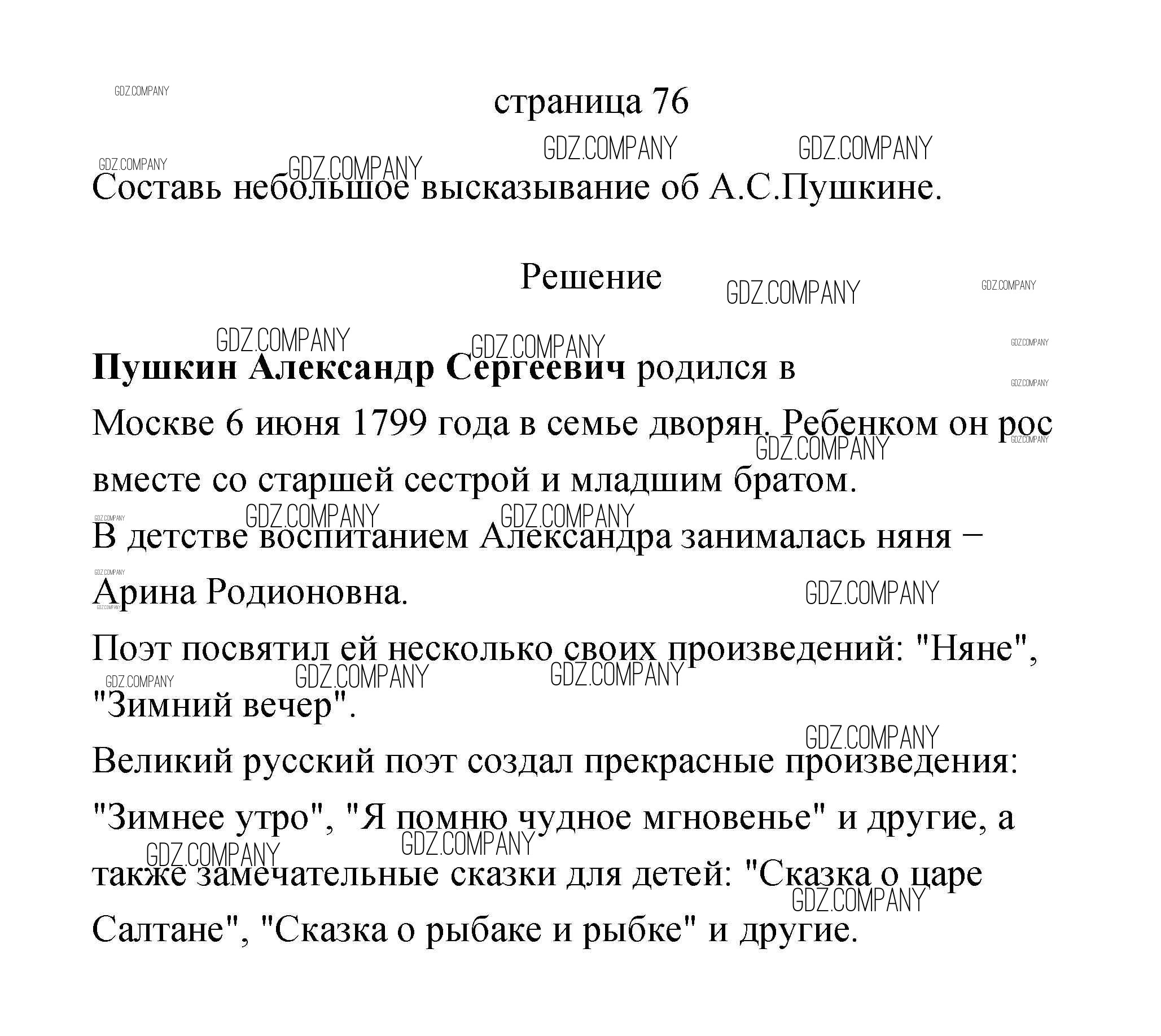 Здесь готовые ответы по Литературе за 2 (второй) класс от Климанова, Горецкий, Голованова Учебник Школа России  (издательство: Просвещение от 2018 г.) № 76
