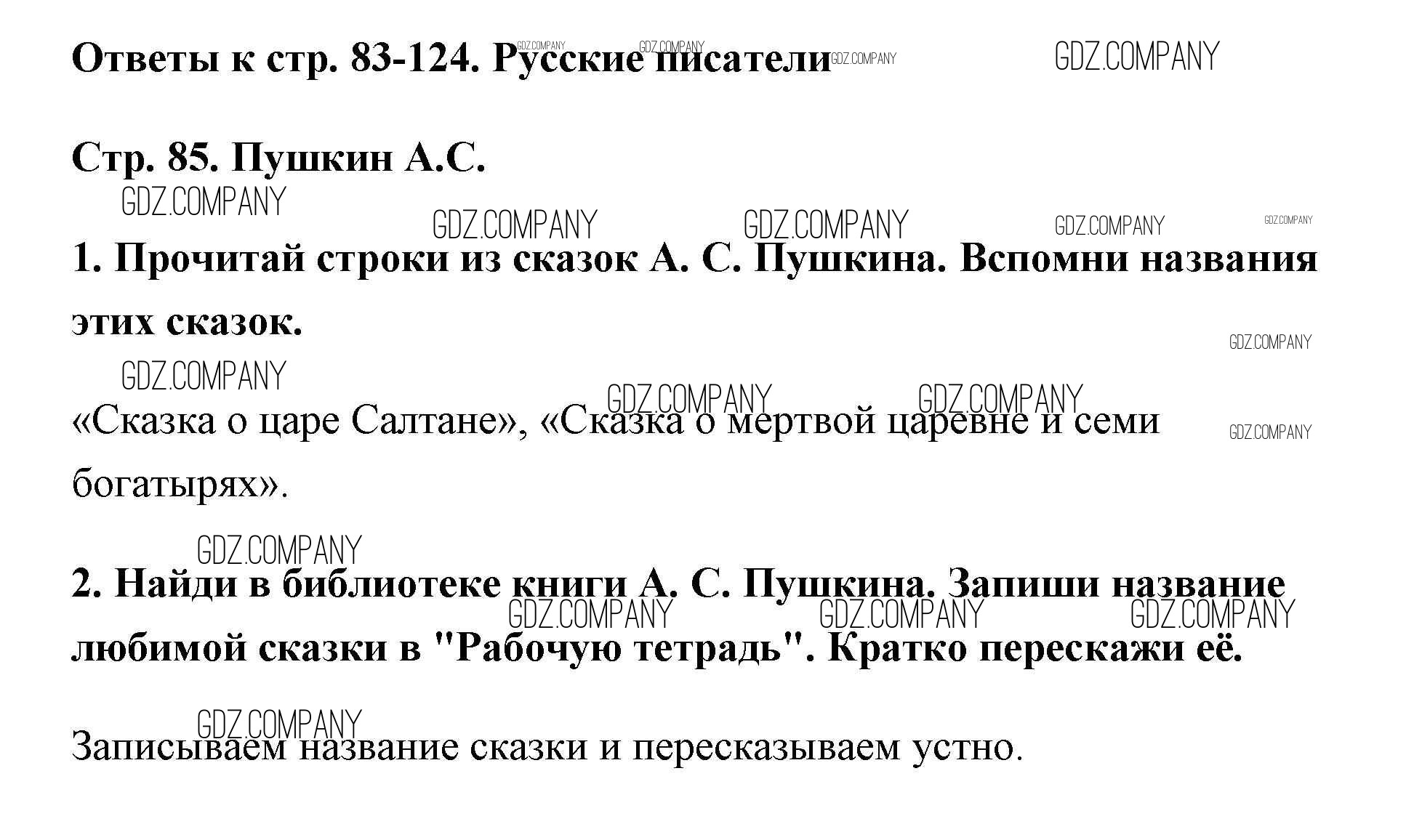 Здесь готовые ответы по Литературе за 2 (второй) класс от Климанова, Горецкий, Голованова Учебник Школа России (издательство: Просвещение от 2018 г.) № 85